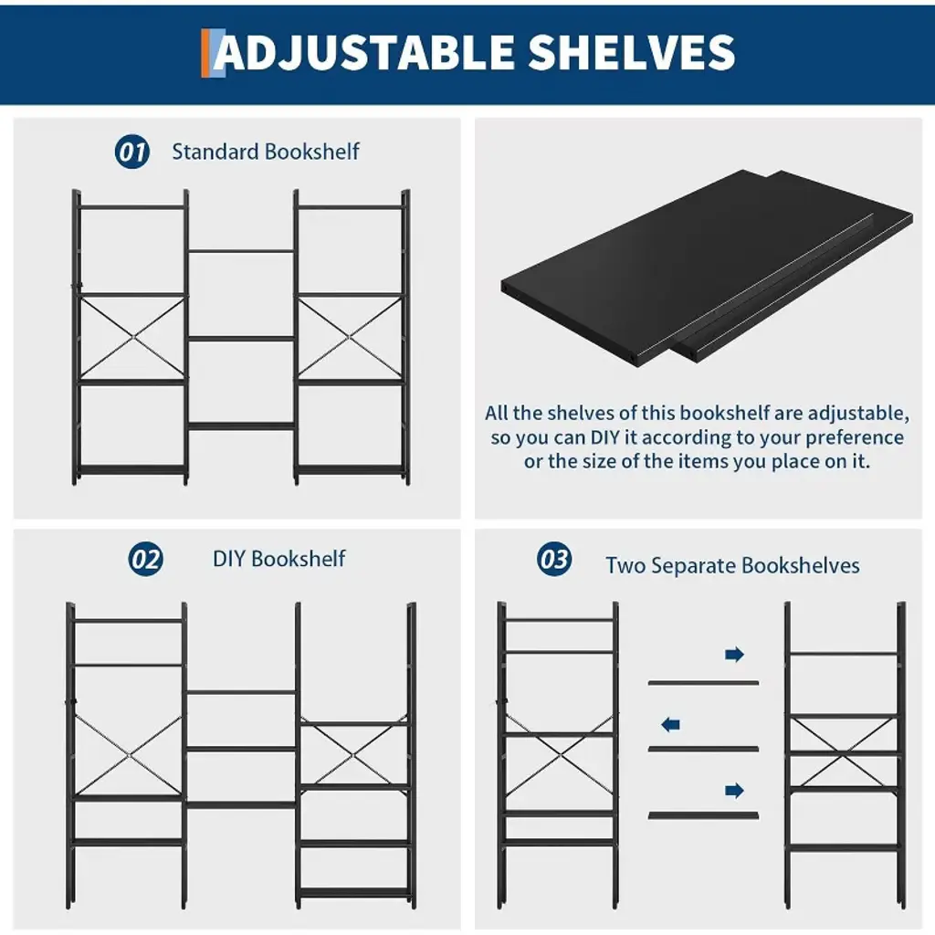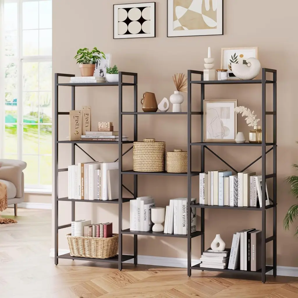 4 Tier Bookcases, Triple Wide Industrial Bookshelf,steel Bookshelf, Display Storage Bookshelves For Living Room, Bedroom, Home, Office