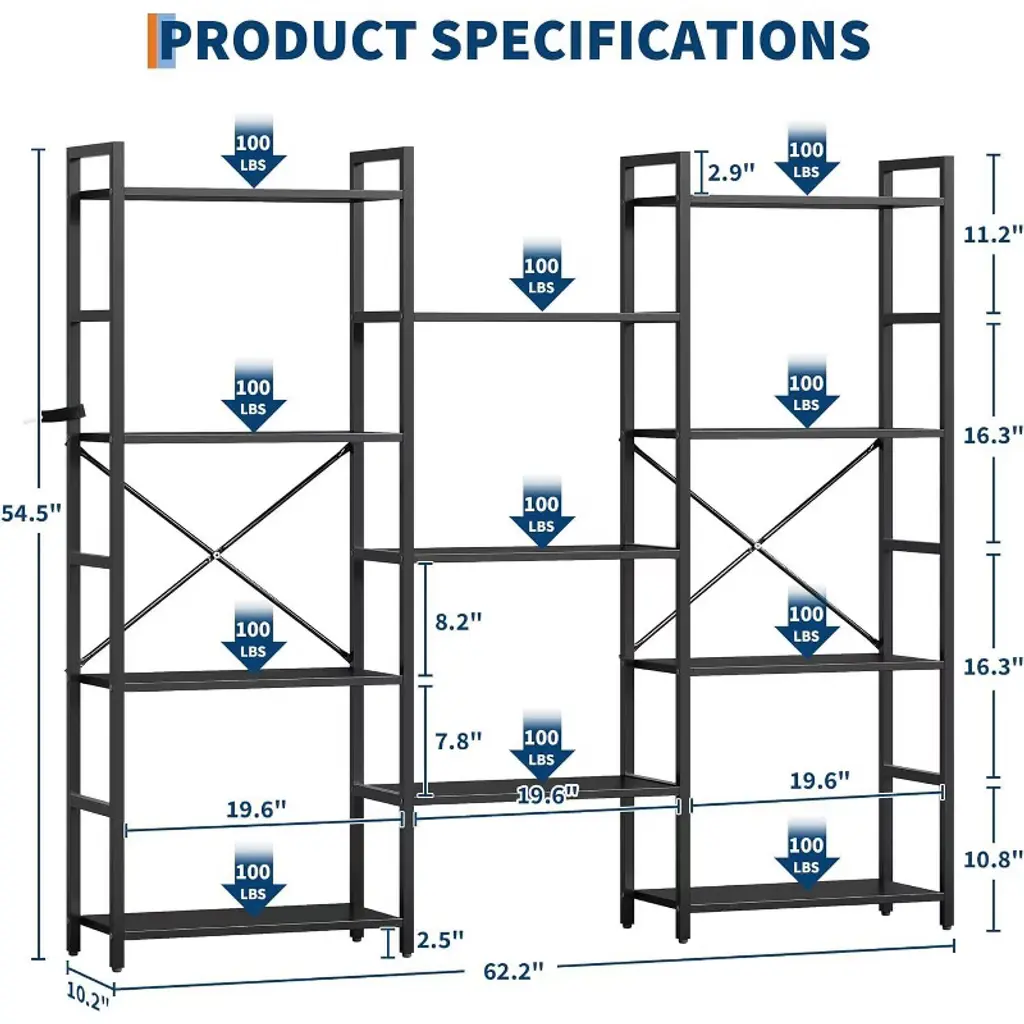With 11 open shelves, this triple-wide unit maximizes vertical space, perfect for storing essentials in living rooms, bedrooms, or offices. The sleek design blends seamlessly with modern or industrial decor styles!