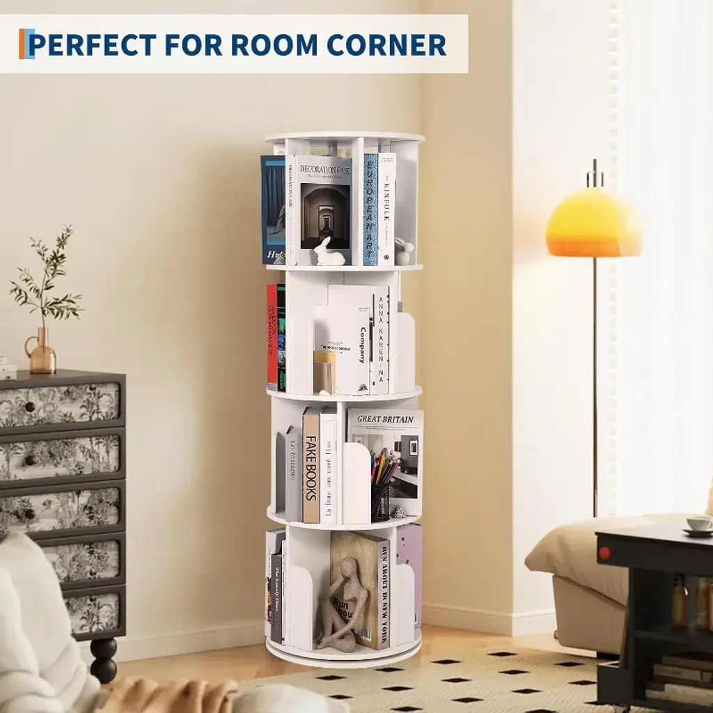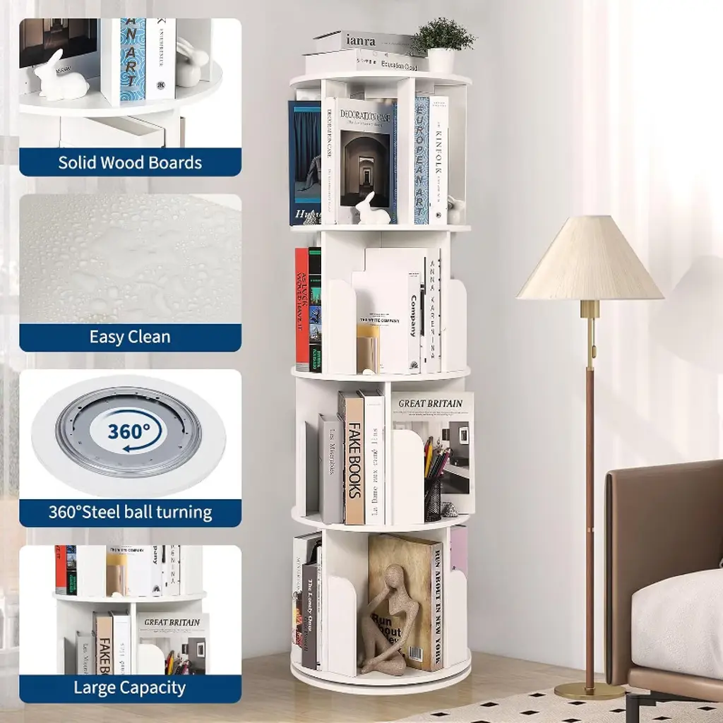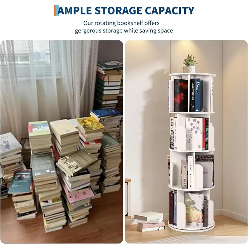 4 Tier Rotating Bookshelf,360°compact Wood Spinning Bookcase For Small Spaces, Corner Storage Organizer For Living Room, Bedroom & Kids' Rooms