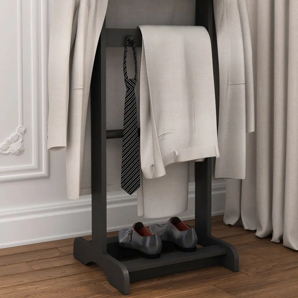 Accent Portable Garment Rack, Clothes Valet Stand With Storage Organizer, For Bedroom, Living Room - Black