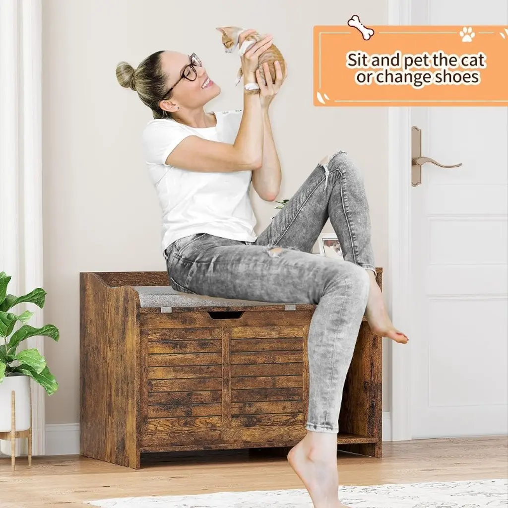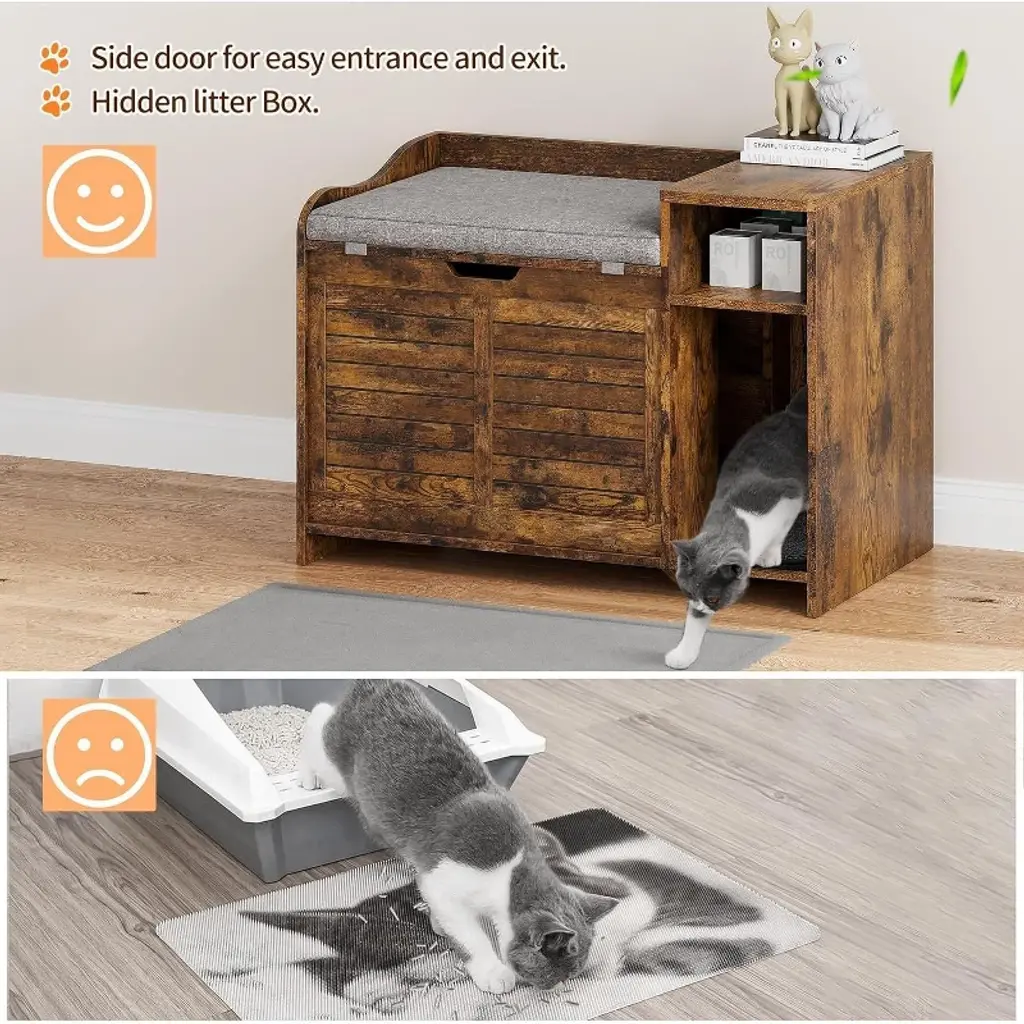 The Acekool 2-in-1 Hidden Cat Litter Box Enclosure offers privacy for cats and blends seamlessly with your home’s décor. Designed as a multi-purpose side table or bench, this furniture piece conceals the litter box while providing valuable surface and storage space. The barn door design, paired with soft, modern tones, brings style to bedrooms, hallways, or living rooms. Inside, a spacious compartment fits most standard litter boxes, and the cozy cushioned top doubles as a cat bed or convenient seat for humans. The side entry corridor delivers extra privacy for your cat, reduces litter mess, and discourages other pets from entering. A built-in storage nook keeps supplies close and out of sight. Assembly is easy with pre-labeled parts and clear steps. The sturdy structure stays steady in busy spaces, and the wipe-clean finish supports quick maintenance. With Acekool, you can create a cleaner, more inviting environment for both your pet and your home.