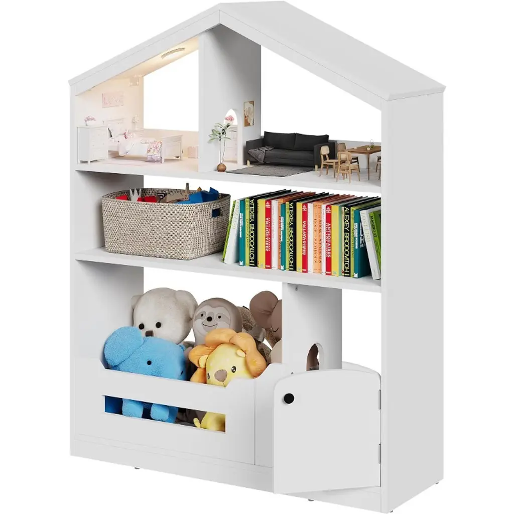 The Acekool 3-Tier Kids Bookshelf brings both charm and practicality to any child’s space. Its unique house-shaped silhouette with a pitched roof adds a sense of playfulness, making it a delightful addition to bedrooms, playrooms, or classrooms. The modern wood design pairs well with a variety of interior themes, from bright and cheerful to rustic or minimalist. This organizer is built with three roomy shelves, offering plenty of space for storybooks, plush toys, school supplies, and creative projects. The motion sensor light enhances convenience and fun, lighting up the shelves as your child approaches and making it simple to pick out a bedtime story or find a favorite toy, even in low light. The sturdy frame and smooth edges help create a safer environment for young users. Measuring 36.61" long, 12.6" deep, and 47.24" tall, this bookshelf is sized to hold plenty without taking up much floor space. Assembly is simple with included instructions. Encourage kids to build good habits as they manage their own storage and keep shared areas tidy.
