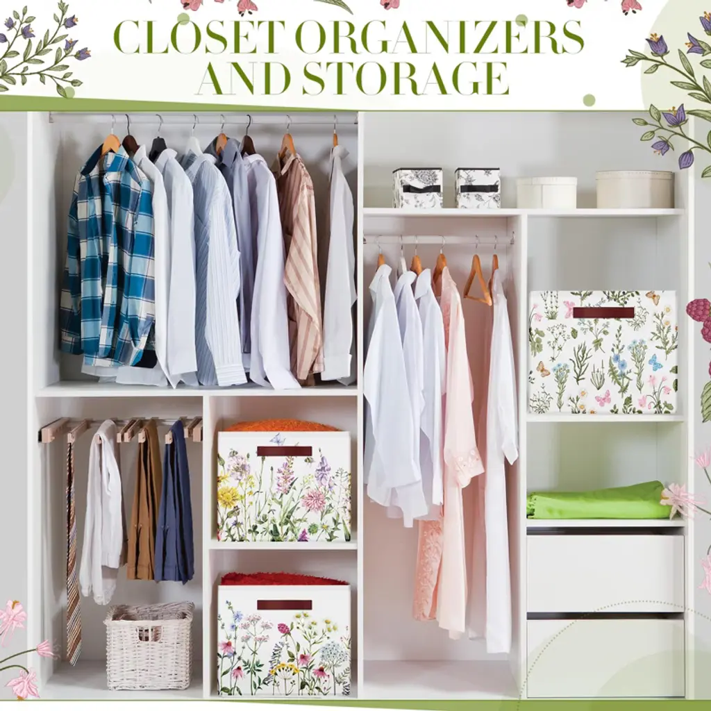 Keep your space beautifully organized with these large floral storage baskets, featuring a sturdy canvas exterior and convenient handles for effortless movement. The collapsible, space-saving design means you can tidy up closets, bedrooms, playrooms, or offices in style and simply fold them away when not in use. Versatile and charming, these bins are perfect for clothes, toys, books, or home essentials¡ªbringing both order and a touch of elegance to any room.