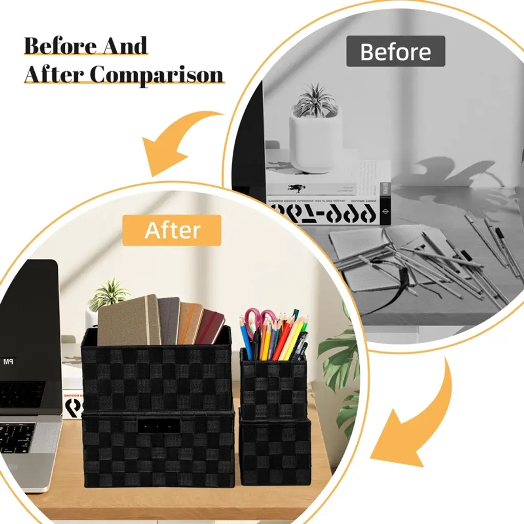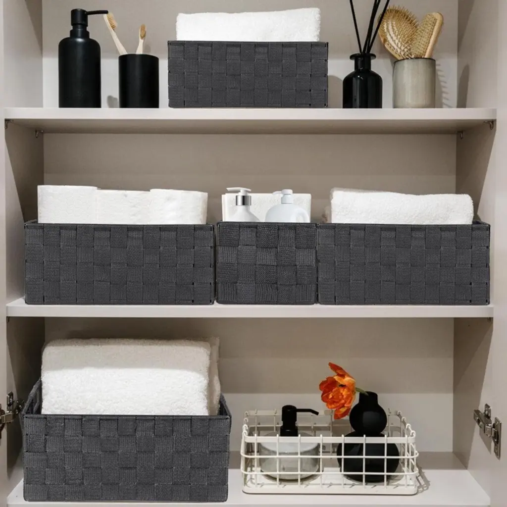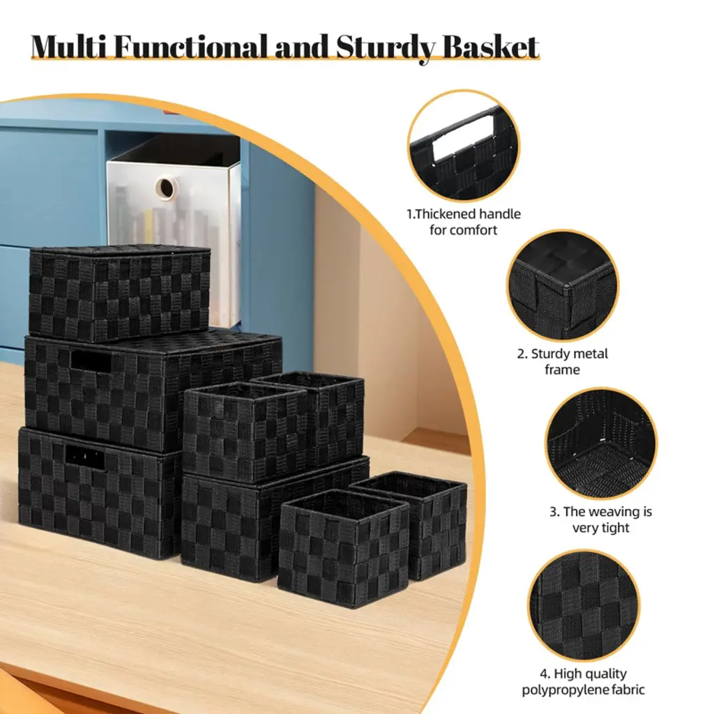 Aoibox Woven Polypropylene Storage Basket Organizer Set Of 8 With Lids Multi Size For Bedroom Bathroom Black