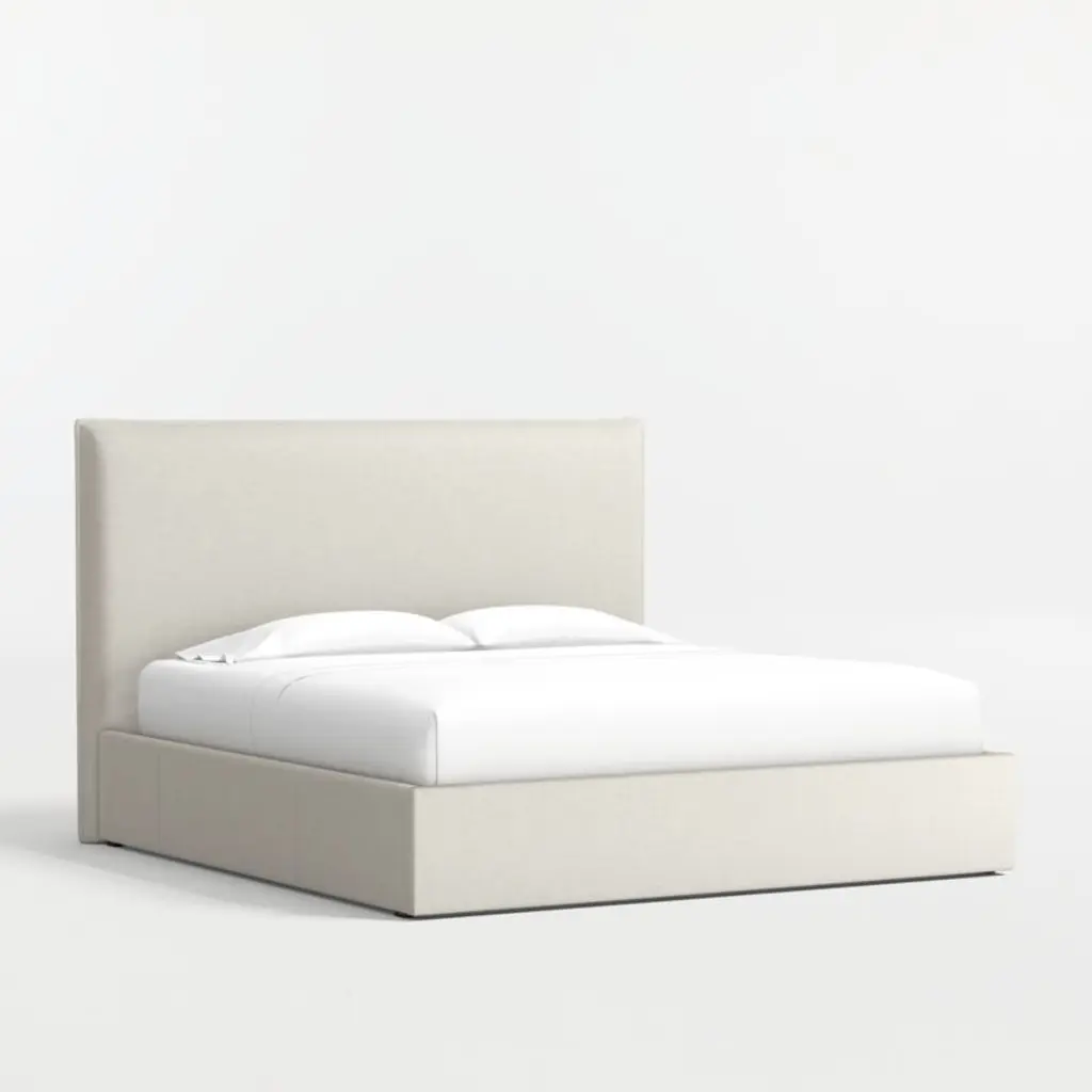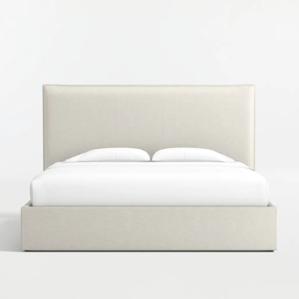 Our custom bed collection lets you mix and match our top-selling headboards and bases for a look that's truly yours. Our coastal-cool Arvada headboard offers pillow-like comfort and the casual look of a relaxed flange border. The matching upholstered base integrates three roomy drawersone on each side and one at the foot of the bedfor storing off-season clothes and extra blankets. As a plus, the side drawers open with just enough clearance to avoid hitting nightstands and other bedroom furniture.