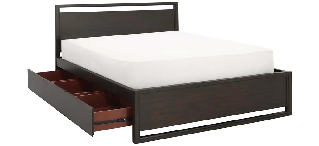 Quality sleep is crucial, but you should also love the way your bedroom looks when you're awake! The Aversa queen storage bed is extraordinarily chic, but still manages to feel right at home in a variety of design schemes. Clean lines, defined edges and box feet create a professionally designed look. Plus, this piece is perfectly sized for small spaces with its low profile.