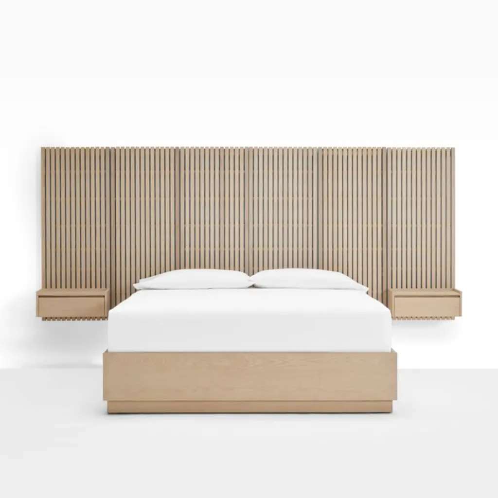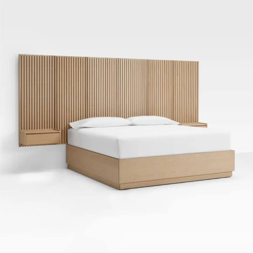 Batten White Oak King Plinth-base Storage Bed, Panels And Nightstands