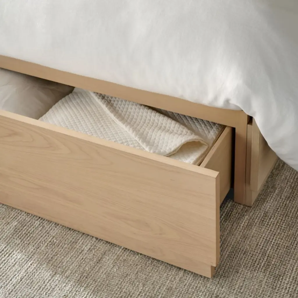 Batten White Oak Queen Storage Bed Plinth-Base