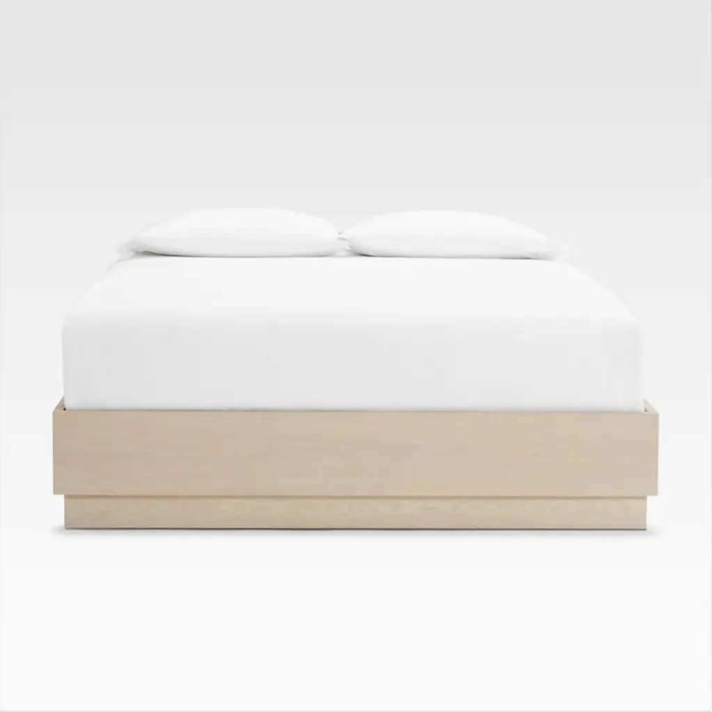 Designed to coordinate with our Batten modular system, this smart plinth-base storage bed showcases the grain of oak veneer with a white oak finish. A great choice for storage-challenged bedrooms, Batten provides a drawer at the foot of the bed for placing bedding, blankets and out-of-season garments. Handsome placed in front of one or two Batten back panels (sold separately), the minimalist bed also looks great on its own or paired up with any of the other headboards in our collection. The Batten bed is designed for us exclusively by Bill Eastburn of William Eastburn Design.