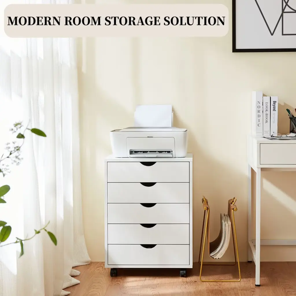 Bestier 5 Drawers Chest Mobile Storage Cabinets, Wooden Dressers With Wheels For Office, Room Organization Furniture For Bedroom, White