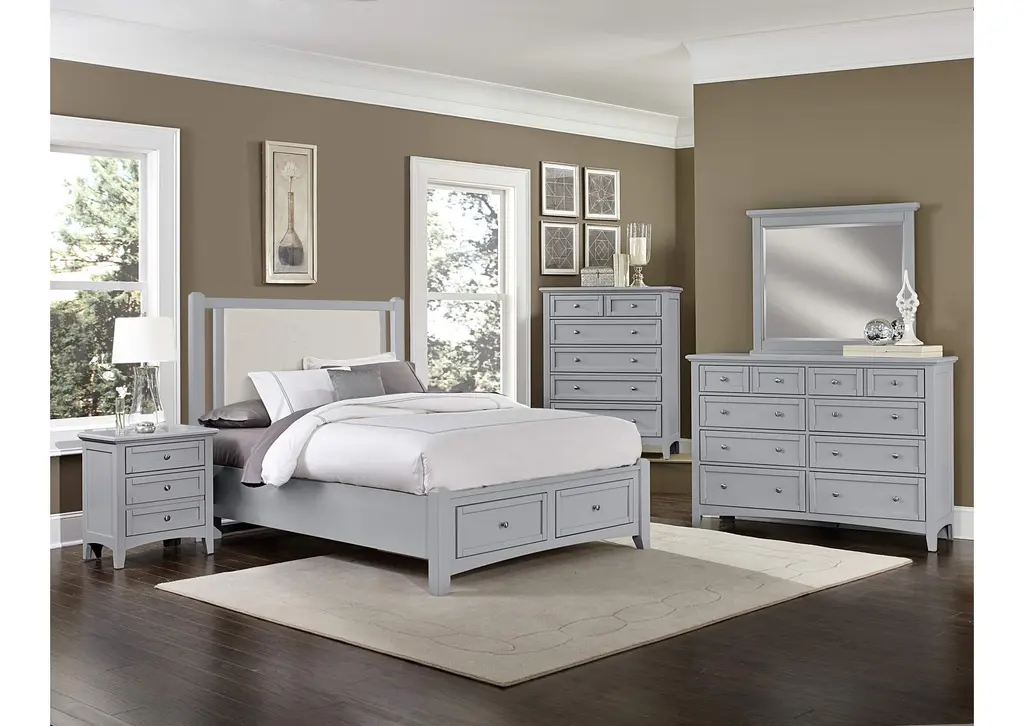 You can have bedroom furniture that is made in the USA with this upholstered poster bed with footboard storage. Its versatile style features a Revolution Performance Fabric. Perfect for contemporary or transitional decor; this bed will easily update the look of any bedroom.