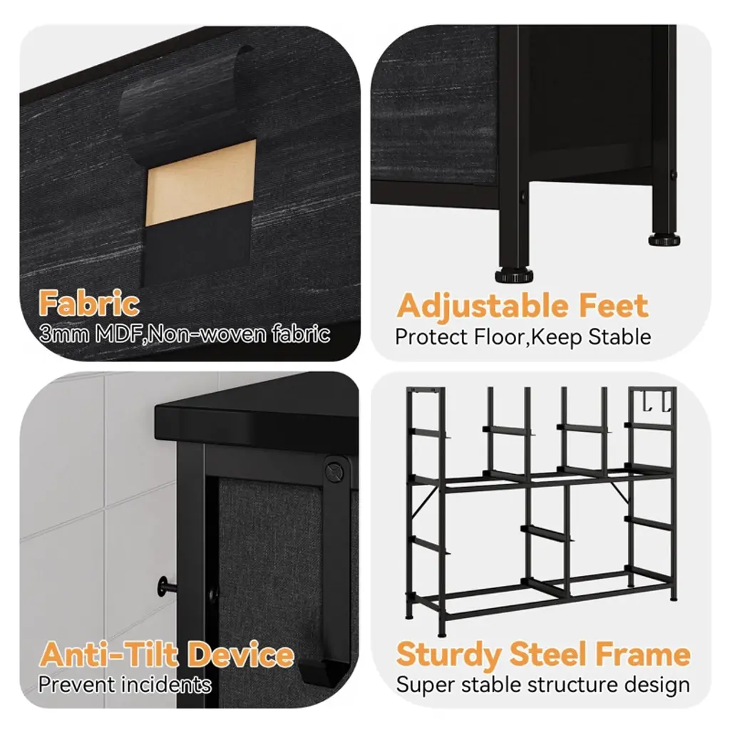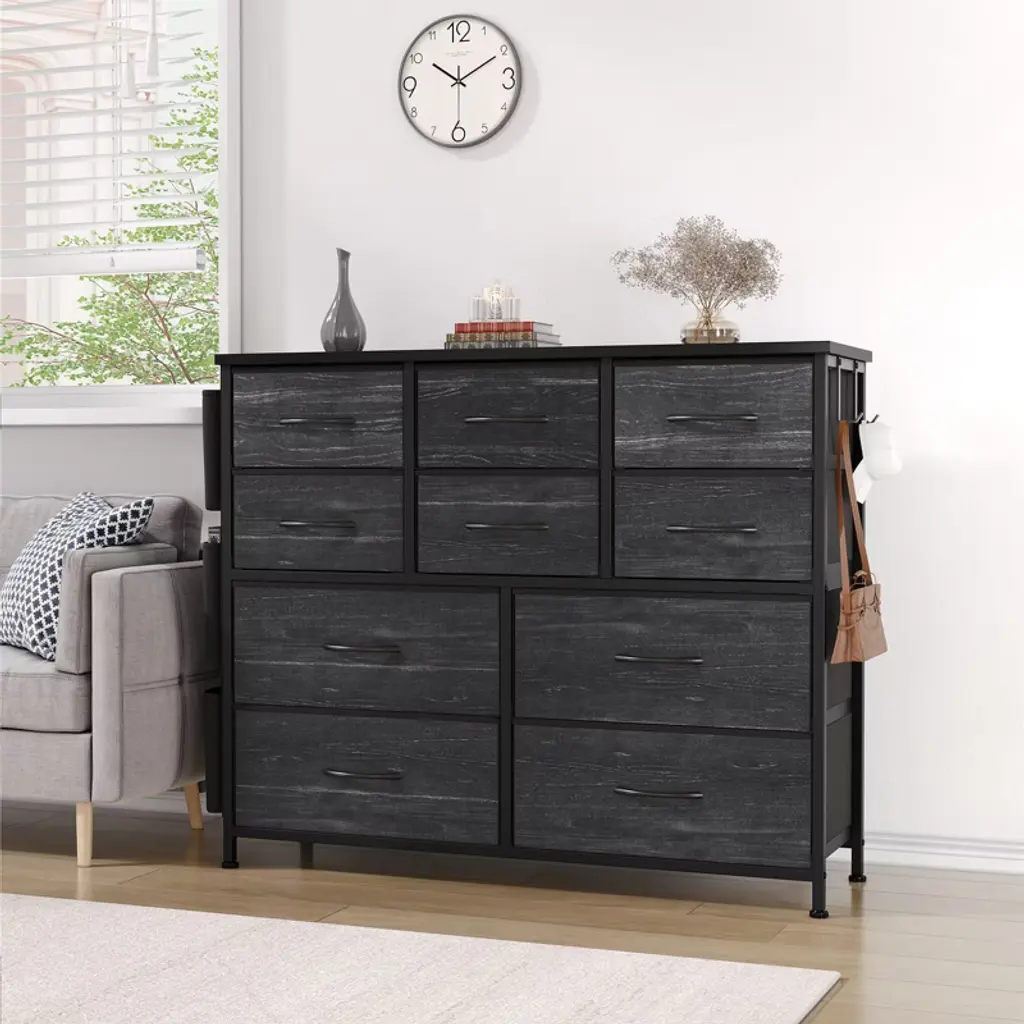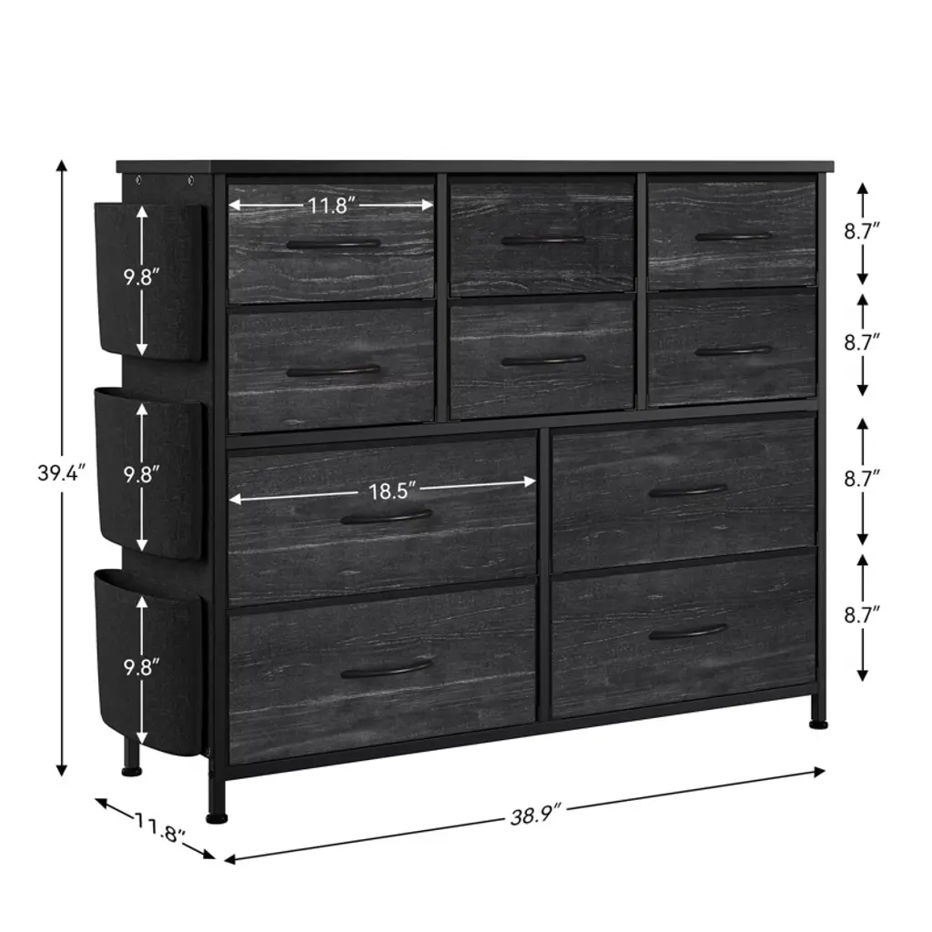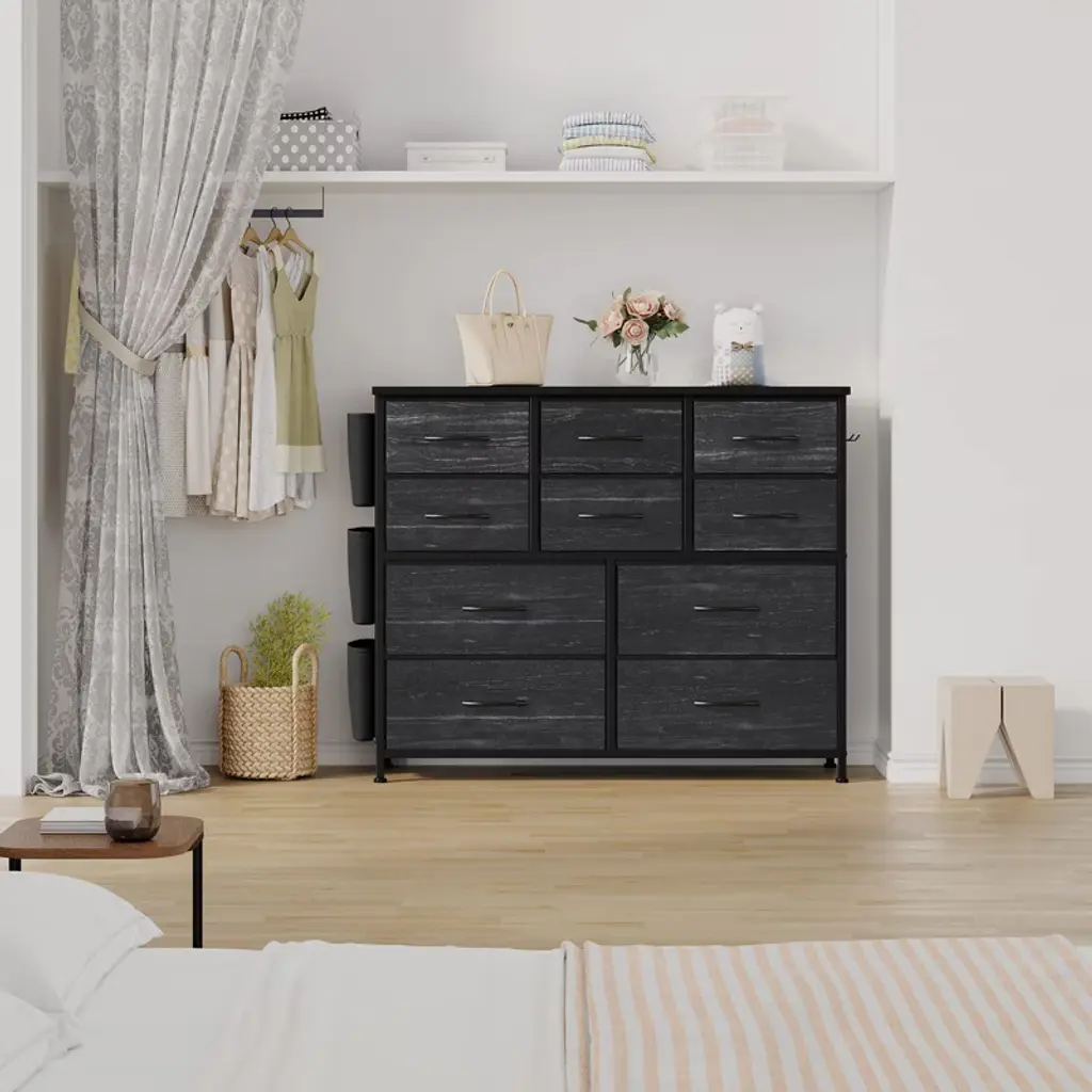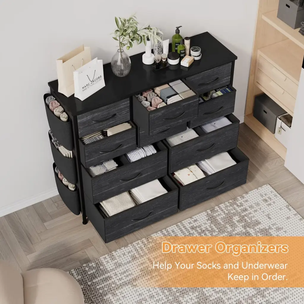 Cabinet Dresser Chest for Bedroom with 10 Drawers Fabric Storage Drawer with Side Pockets for Kids Room, Closet, Hallway, Entryway, Living Room£¬Black