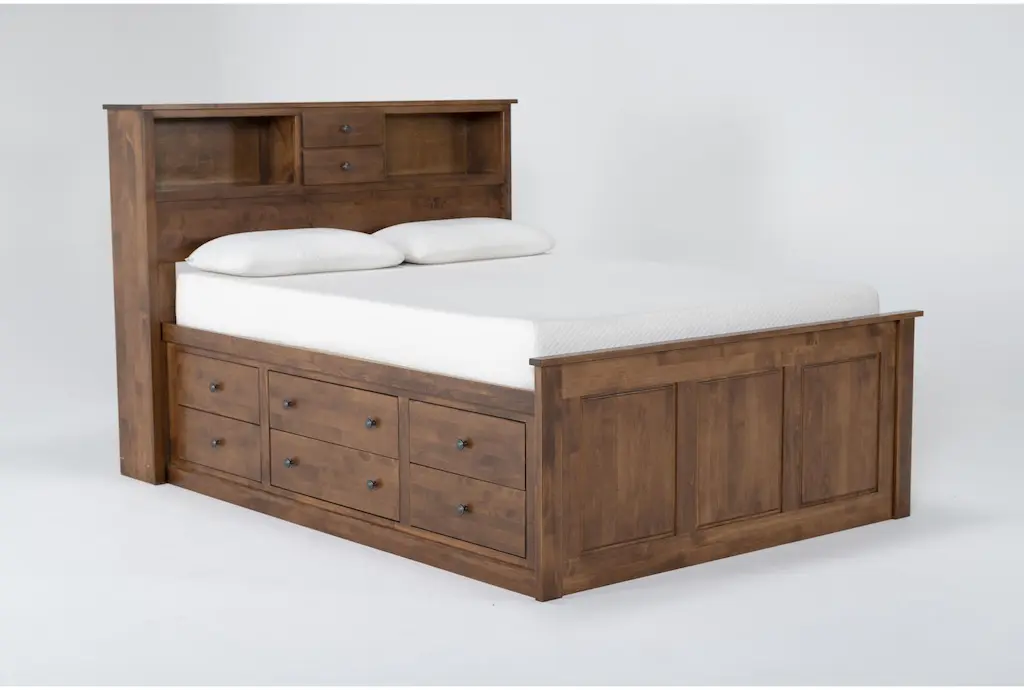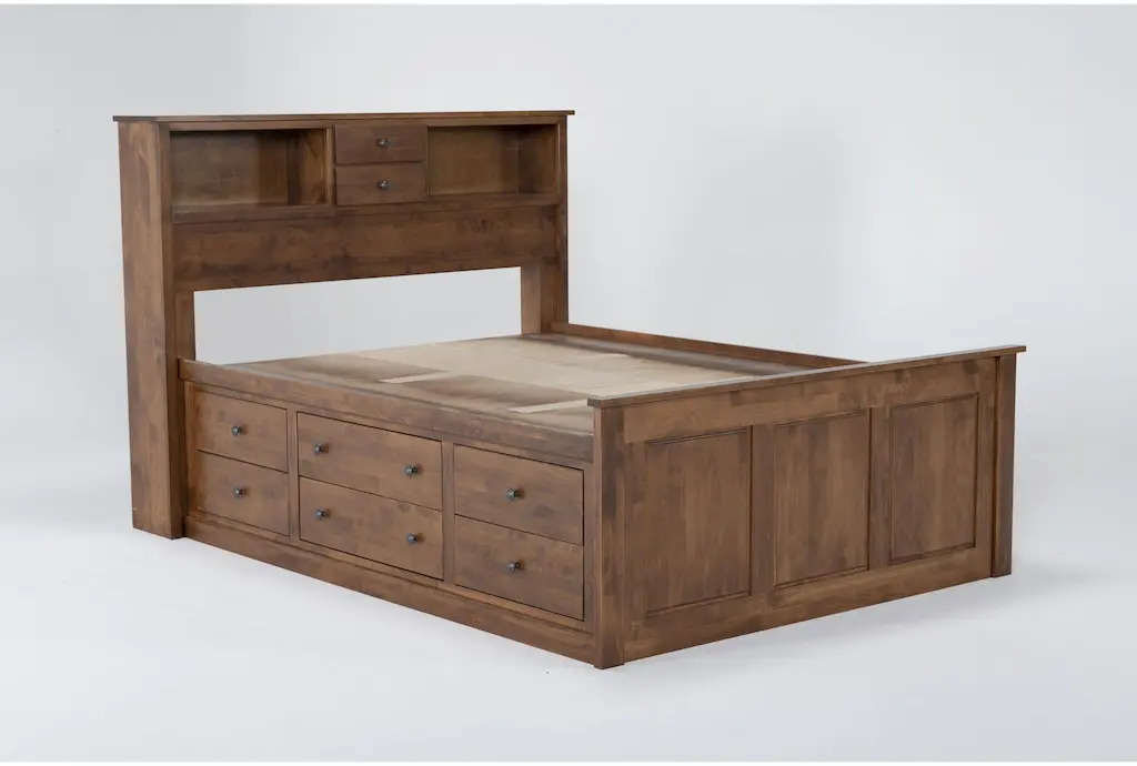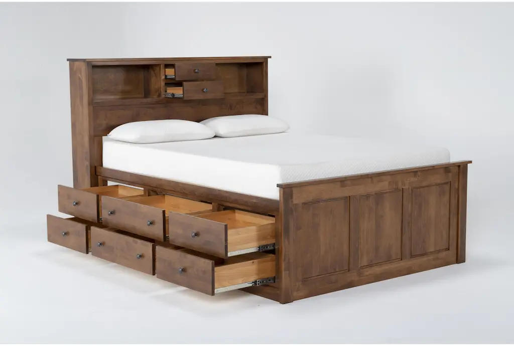 Carson California King Wood Bookcase Captains Bed With Single Sided 6-Drawers Storage