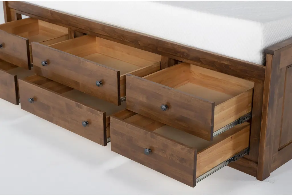 High quality and customizable functionality are the hallmark features of the Carson bedroom collection – one of the standouts from our American-Crafted solid wood furniture line. Dedicated woodworkers construct each piece to exacting standards, so you can enjoy them for generations. North American alder instills strength and character, while English dovetail drawers and easy pull glides ensure seamless operation. Configurations abound, so you can select the perfect design for your space. In addition to choosing between panel and bookcase headboards, you have multiple options for side rail storage – from no drawers, to three drawers to six drawers, plus mix and match possibilities. With this extraordinary versatility, you are destined to create the retreat of your dreams.