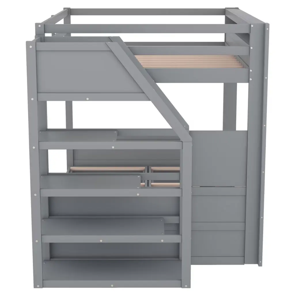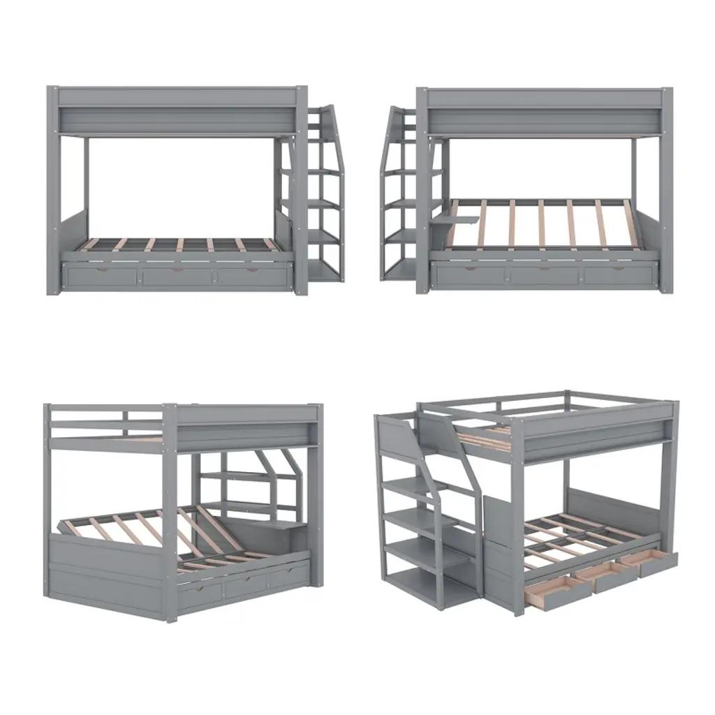 Cavinas Full Size Bunk Bed Modern Wooden Bed Frame With 3 Drawers, Storage Stair And Guardrail For Bedroom, Gray
