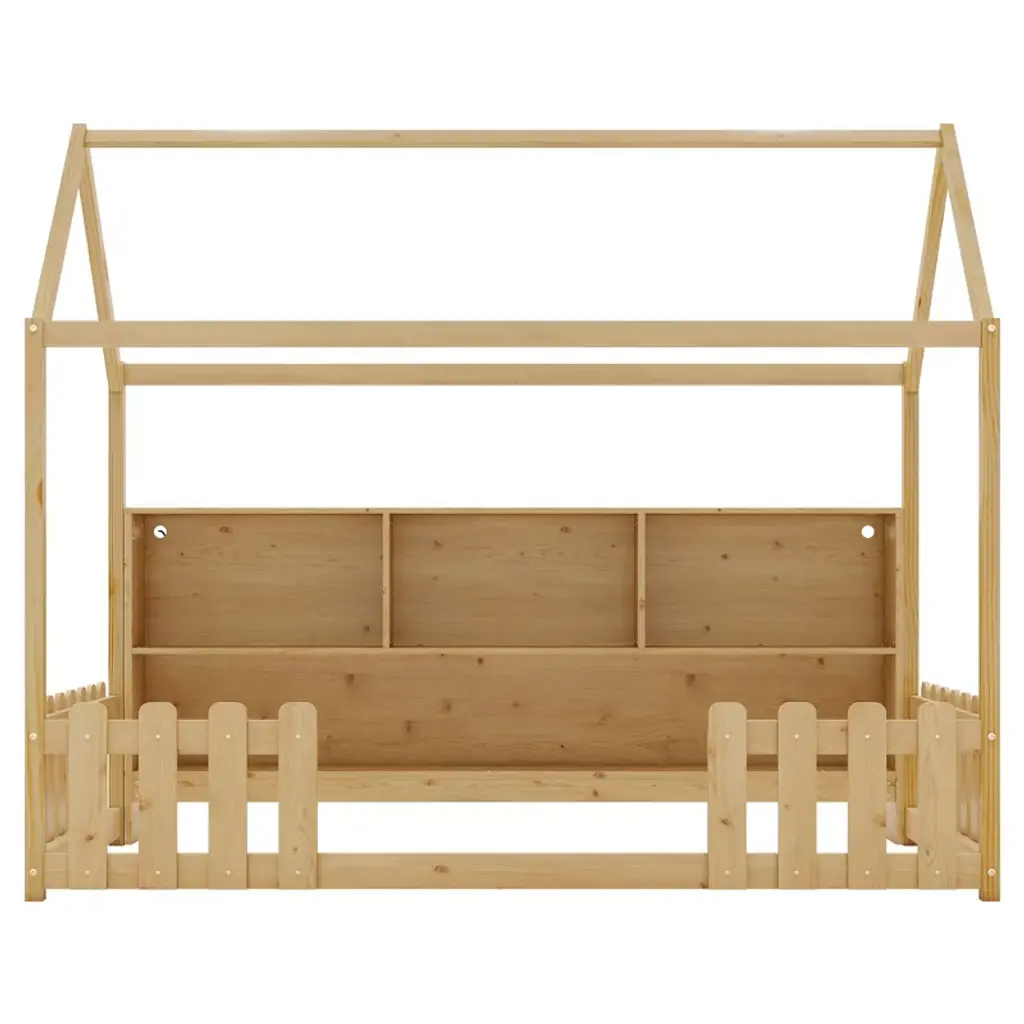 Cavinas Twin Size Childlike House Bed Frame With Storage Bookshelf & Led Light,modern Floor Bed For Kids Room,bedroom,natural