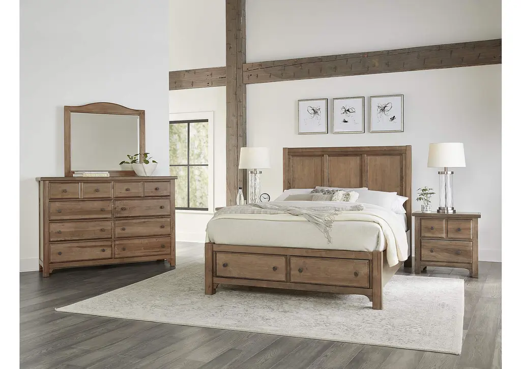 Cool Farmhouse-Natural King Panel Bed With Storage Footboard