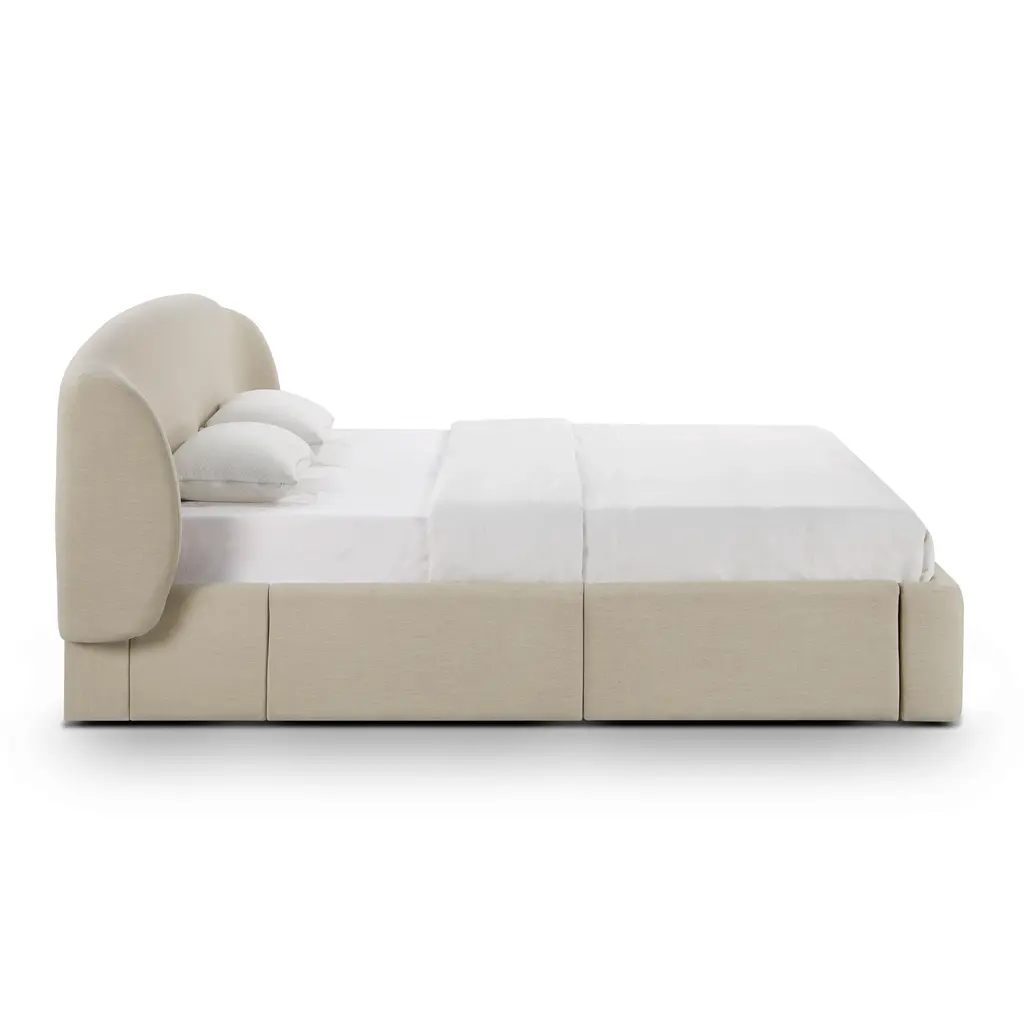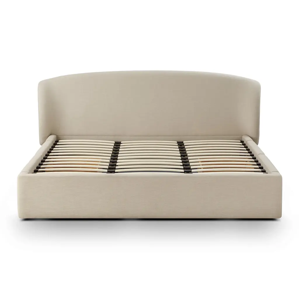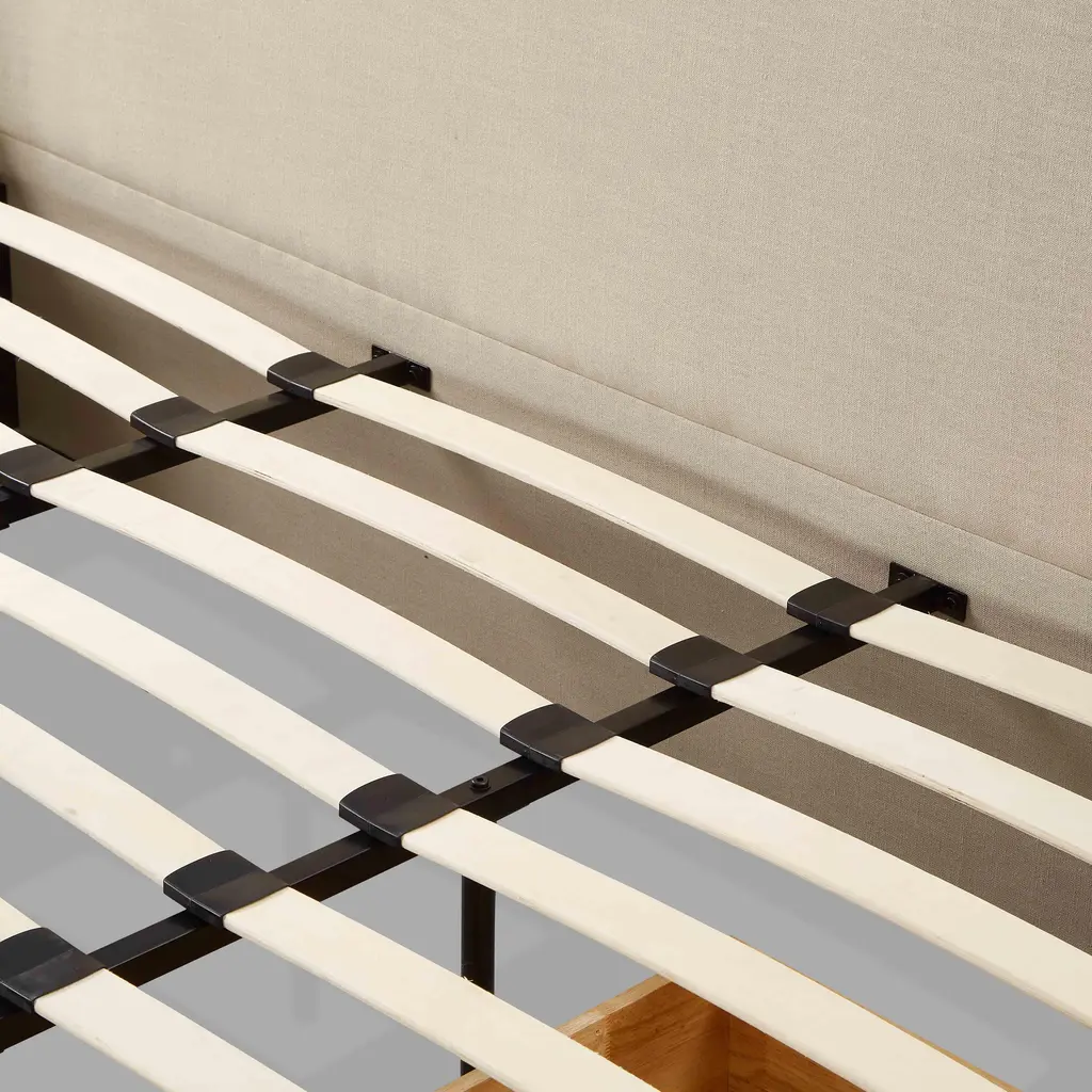 Sustainability gets cozy in the Corey Taupe Storage Bed, crafted from soft, upcycled linen made of reclaimed plastic bottles. With padded sheltering wings and hidden drawers on smooth-glide casters, it’s the definition of chic storage and dreamy comfort.