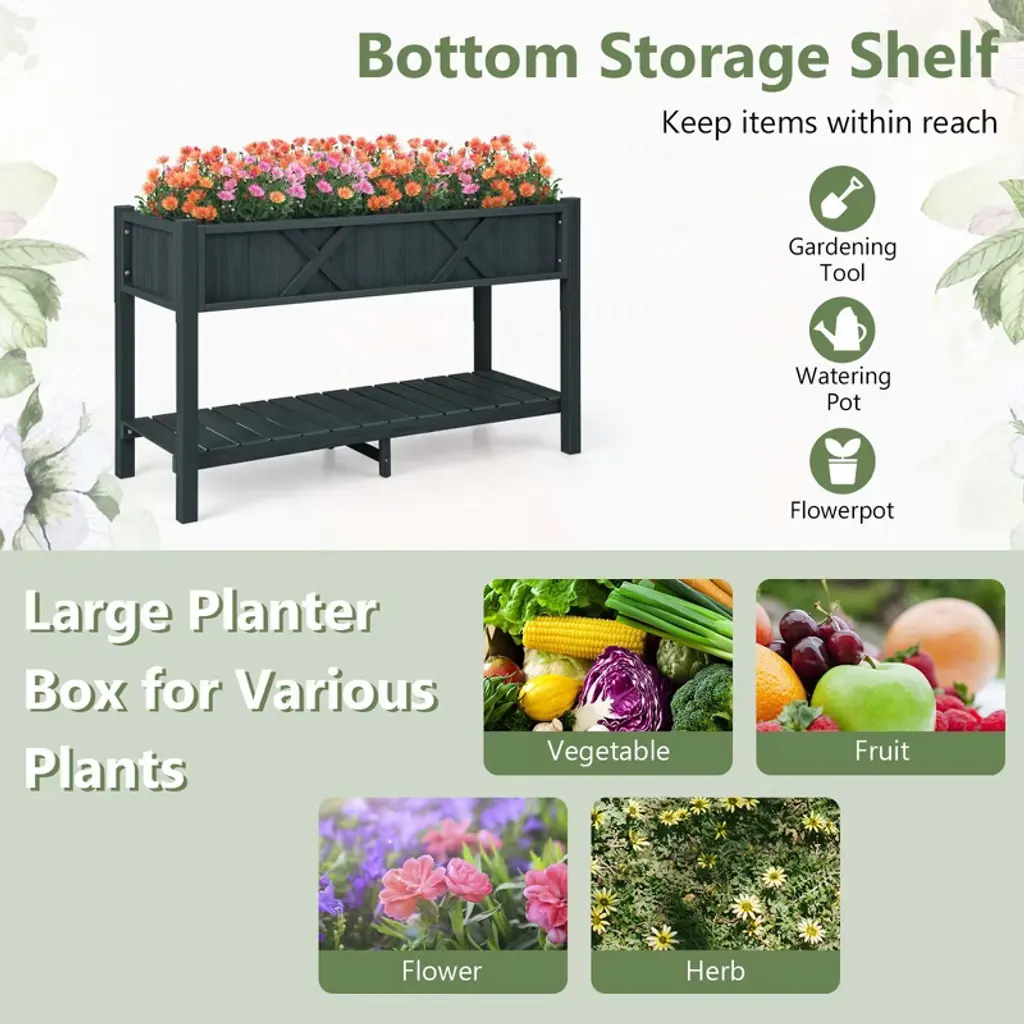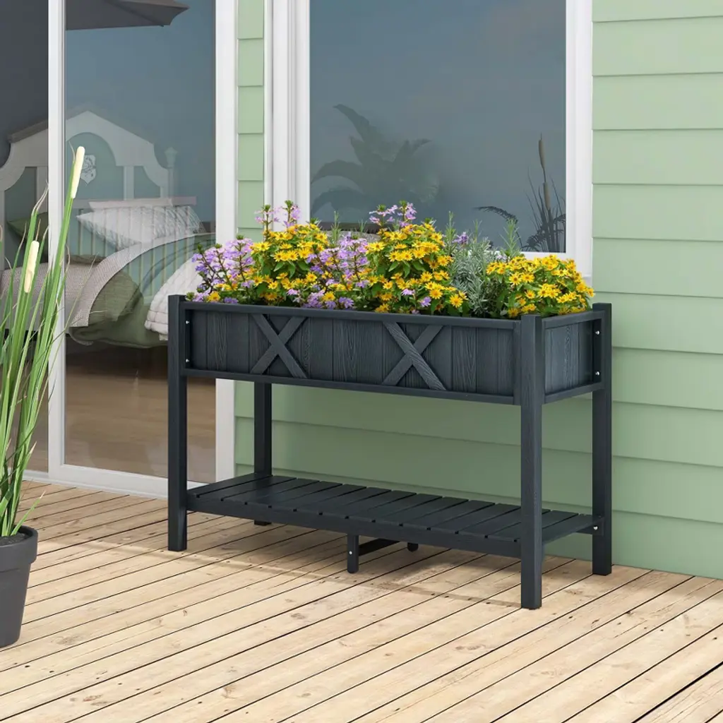 Costway Hips Raised Garden Bed Poly Wood Elevated Planter Box With Legs, Storage Shelf Black