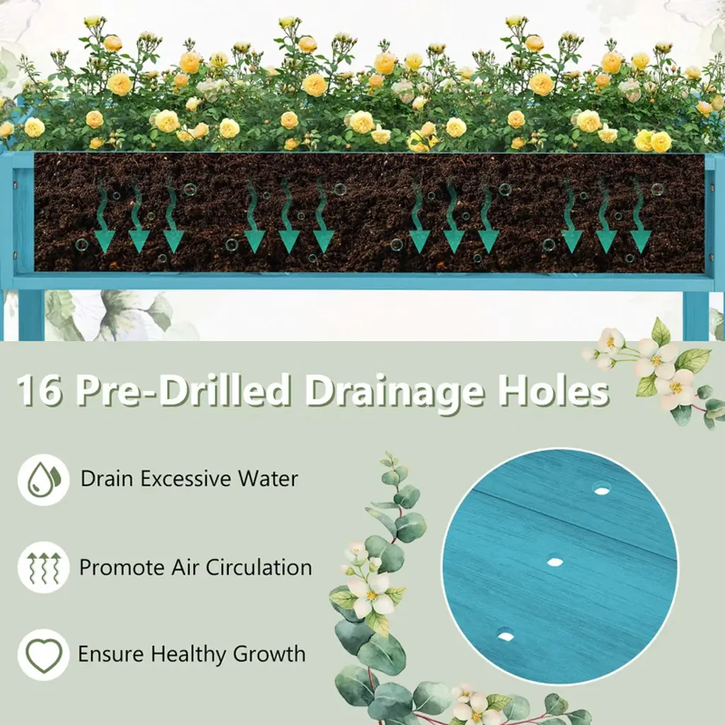 Create a Flourishing Garden and Keep Your Lovely Plants Thriving! Our HIPS raised garden bed measures 47" x 18" x 29" (L x W x H) and comes with a large planter box for various plants to thrive, such as flowers, herbs, vegetables, fruits, etc. And there exists a bottom storage shelf, allowing you to conveniently store your gardening tools, watering pots, and flowerpots, keeping items within reach. Besides, in contrast to normal wooden raised garden beds, our premium HIPS raised garden bed could withstand various weather conditions and ensure that it will not fade, rot, or crack, guaranteeing a lifespan of 5-10 years. And thanks to the reinforced bottom crossbars and an additional supporting leg, this elevated planter box also ensures better stability when filled with soil and plants. Other than that, it comes with drainage holes, ensuring proper water management and preventing water-logging that can harm your precious plants. And the elevated design provides protection for your plants against small animals, while also offering convenient access for watering.FeaturesCrafted of 100% HIPS material, not easy to fade, crack, or rot, ensuring longevity The premium HIPS raised garden bed ensures a lifespan of 5-10 years The bottom crossbars ensure that the structure remains strong and stable The additional supporting leg ensures the frame is not easy to warp or bend Features rich and textured grains and decorated with elegant X-shaped bars The bottom drainage holes ensure good water drainage and well ventilation The elevated design with ergonomic heights can prevent painful kneeling or bending Suitable for cultivating various plants, such as flowers, herbs, vegetables, fruits, etc The ventilated slatted shelf provides a practical solution for gardening accessoriesColor: Blue/Coffee/Black Material: HIPS Overall Dimensions:47" x 18" x 29" (L x W x H) Interior Size of the Planter Box:44" x 15" x 7" (L x W x H) Size of the Bottom Shelf: 47" x 14.5" x 6.5" (L x W x H) Weight Capacity of the Planter Box: 110 lbs Weight Capacity of the Bottom Shelf:66 lbs Net Weight: 40 lbs Package Includes: 1 x HIPS Raised Garden Bed 1 x User’s Manual