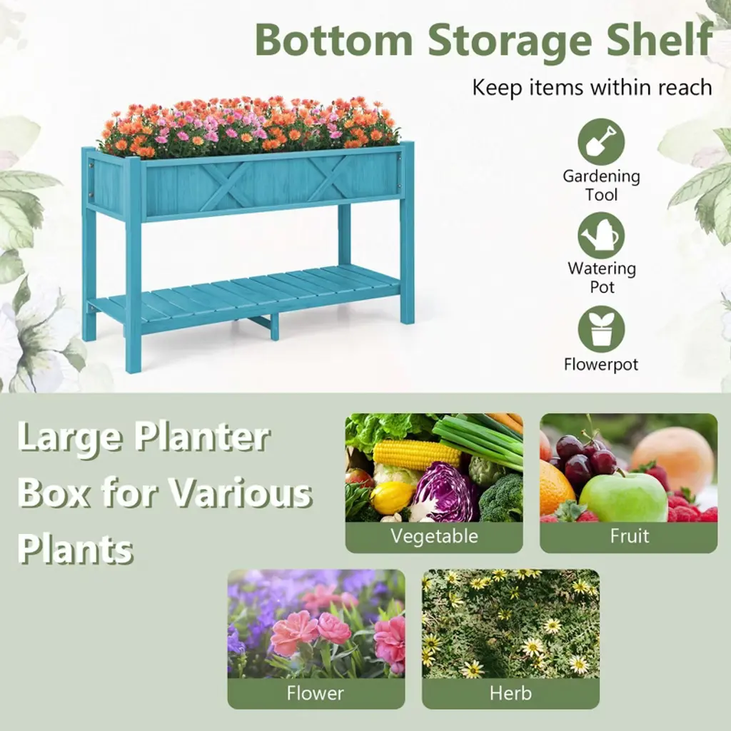 Costway Hips Raised Garden Bed Poly Wood Elevated Planter Box With Legs, Storage Shelf Blue