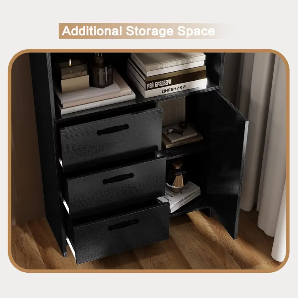 Coucheta 6-tier Bookshelf With 3 Drawers, 71" Tall Bookcase With Door & Open Shelves, Storage Cabinet For Home Office, Living Room & Bedroom, Black