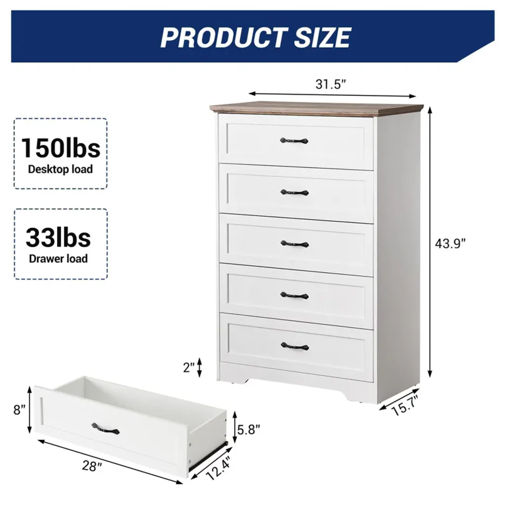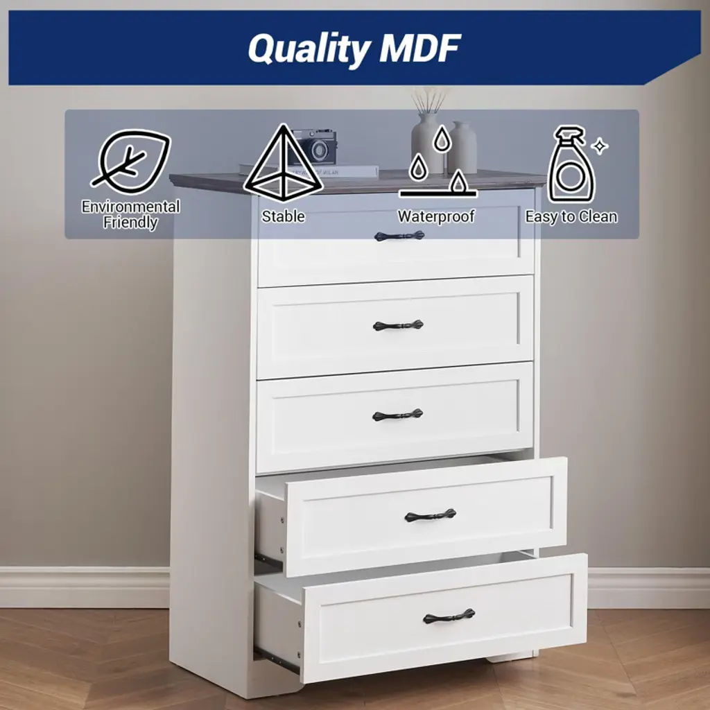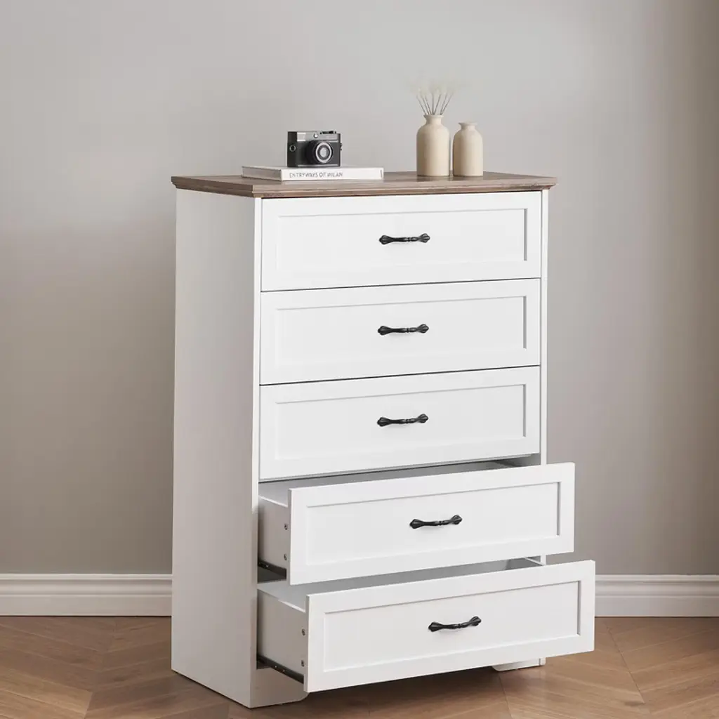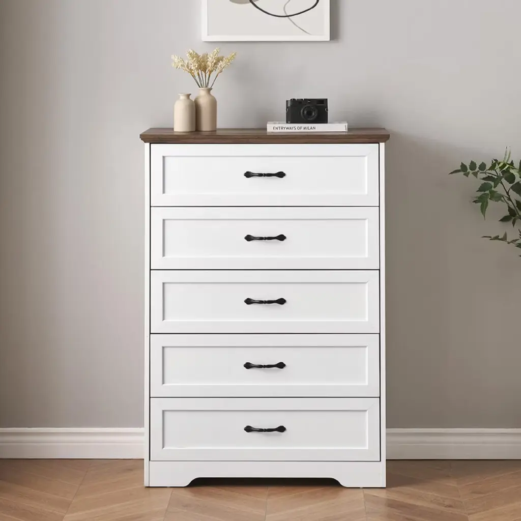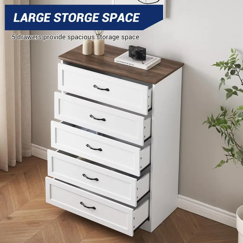 Features:Flexible Drawer Configuration: Innovative modular design allows customizable 5 or 6-drawer setup to match your specific storage needsSmooth Gliding Mechanism: Premium drawer slides ensure quiet, effortless operation even when fully loaded with clothing or accessoriesModern Minimalist Design: Clean lines and versatile styling complement contemporary bedroom, closet, or living room decorChild-Safe Construction: Rounded corners and stable frame provide added safety for kids' rooms while maintaining sleek aestheticsEasy Assembly System: Designed with intuitive components and clear instructions for straightforward setup and future reconfigurationPackage Included:1 × COZONY Dresser Main Frame