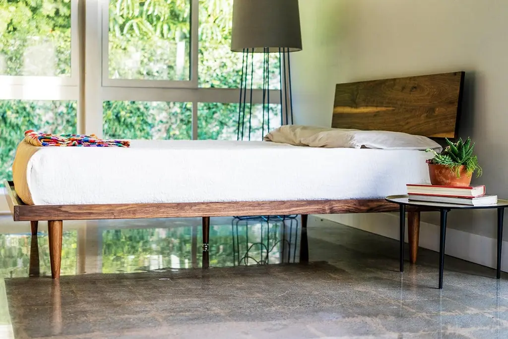 Deeble "Western" Platform Bed, Mid-Century Modern Solid Walnut Storage King