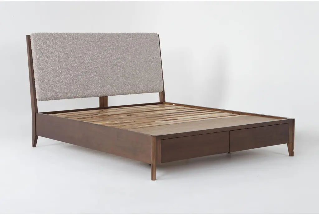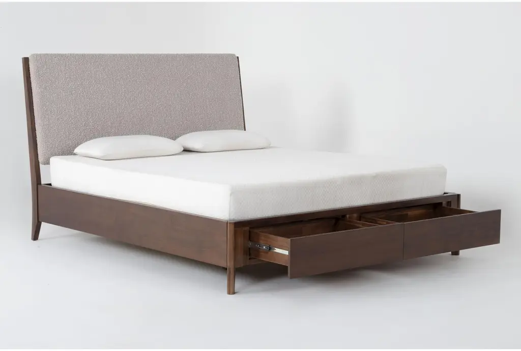 Draper Brown California King Wood Platform Storage Bed | Upholstered Headboard | Drawers