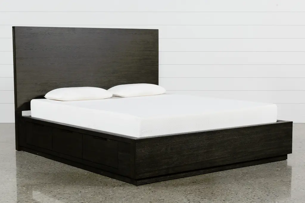 Draper Brown King Platform Storage Bed | Wood Headboard | Drawers