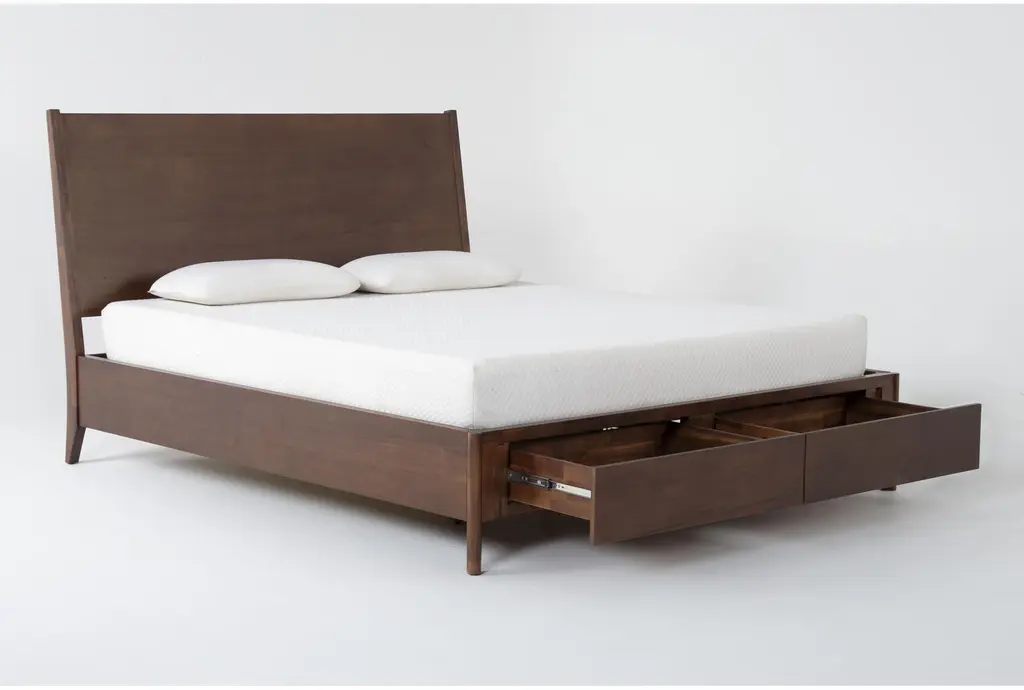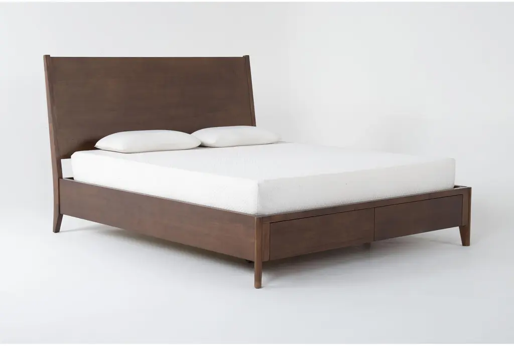 Draper Brown King Platform Storage Bed | Wood Headboard | Drawers