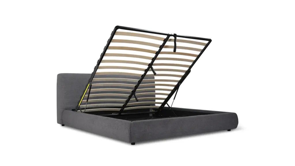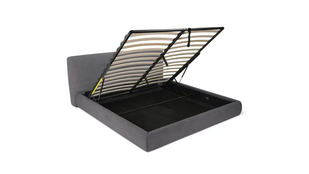 Dreams do come true. With clean lines, soft edges, and a plush, padded headboard, this king bed truly lives up to its name. A streamlined frame with textured performance fabric makes for easy, low-maintenance care, while hidden storage under a clever hydraulic lift gives you extra space to stash things out of sight. Tu