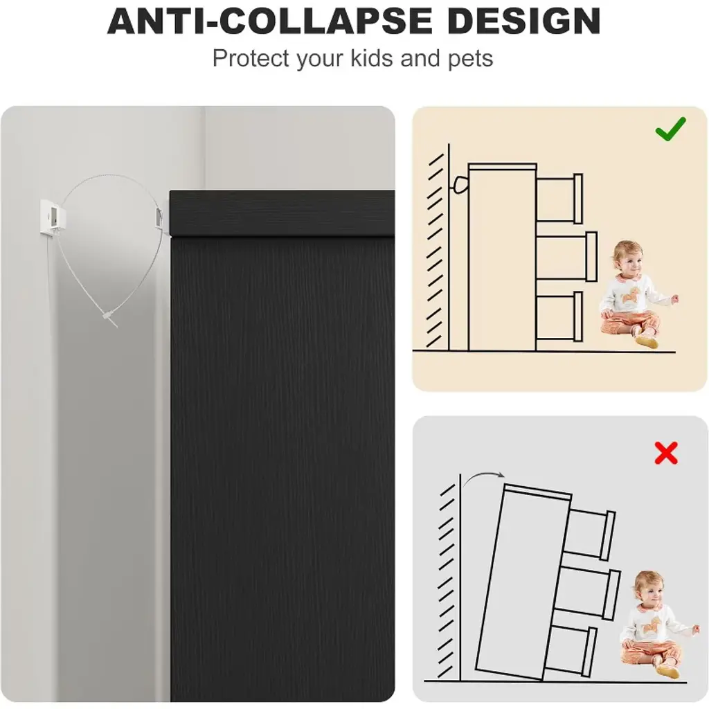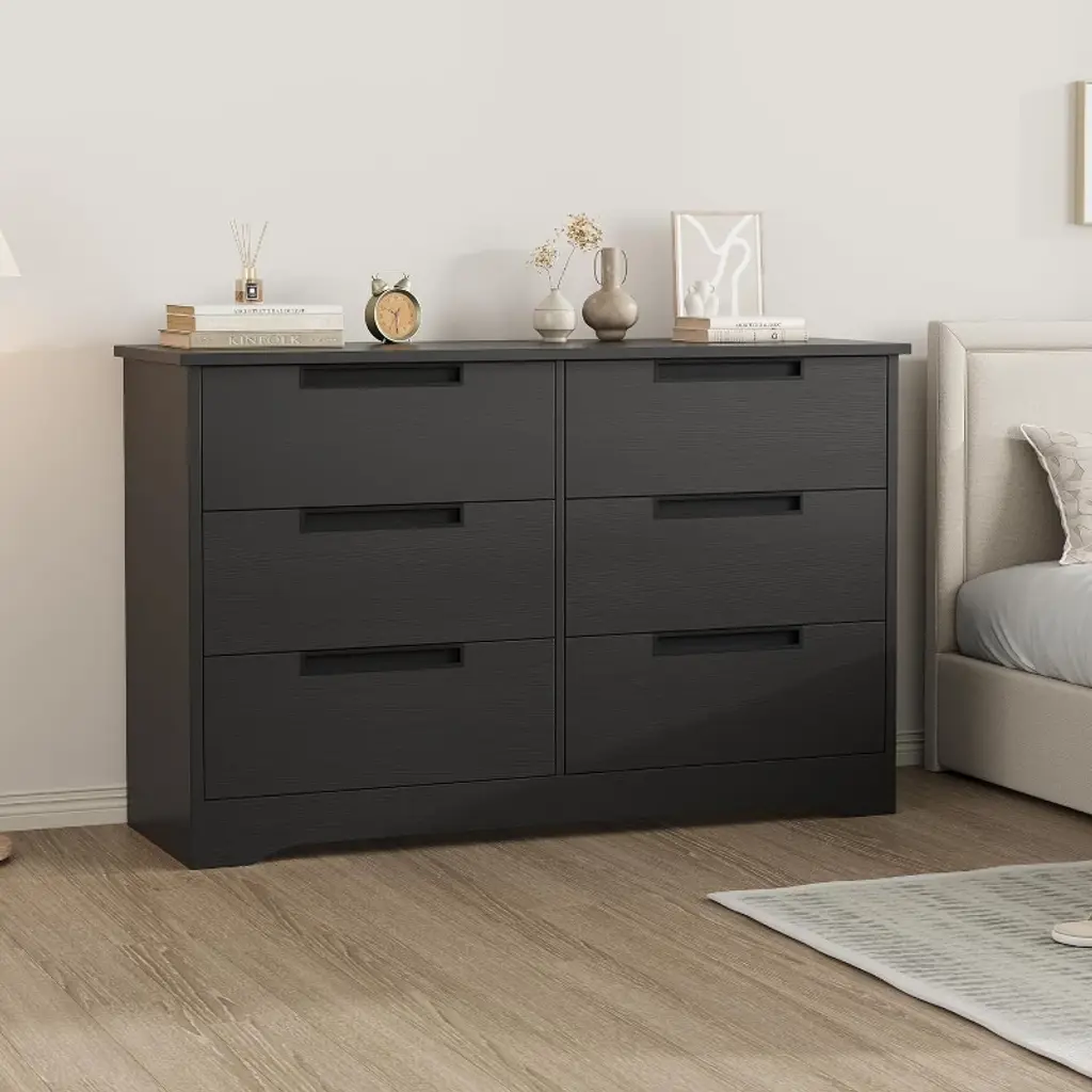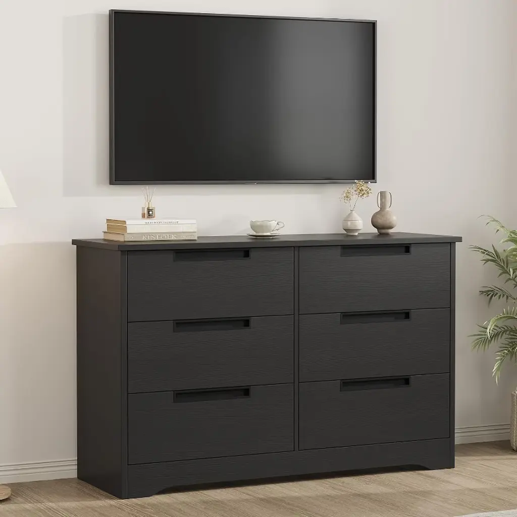 Dresser with 6 Drawer for Bedroom, Storage cabinet Drawers with Handles, Wooden Dresser Organizer for Living Room, Nursery, Hallway,Black