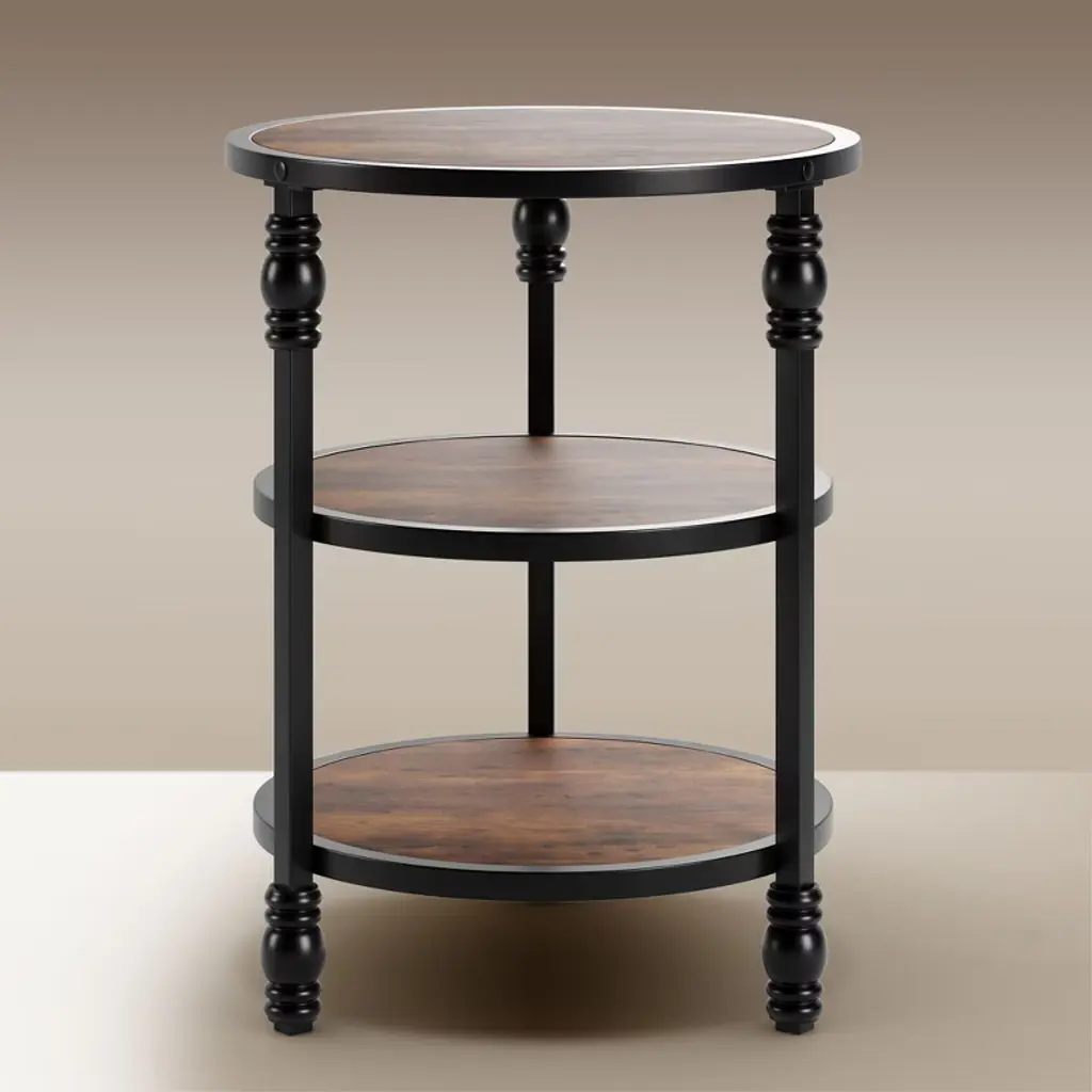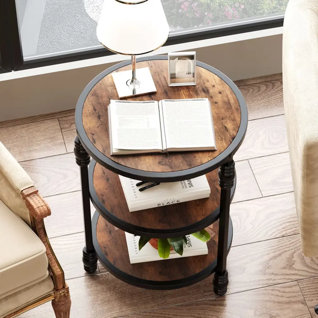 End Table 3-tier Round Side Table, Living Room Accent Table With Storage Shelf, Metal Industrial Wood Bed Side Table, Night Stand For Bedroom, Sofa
