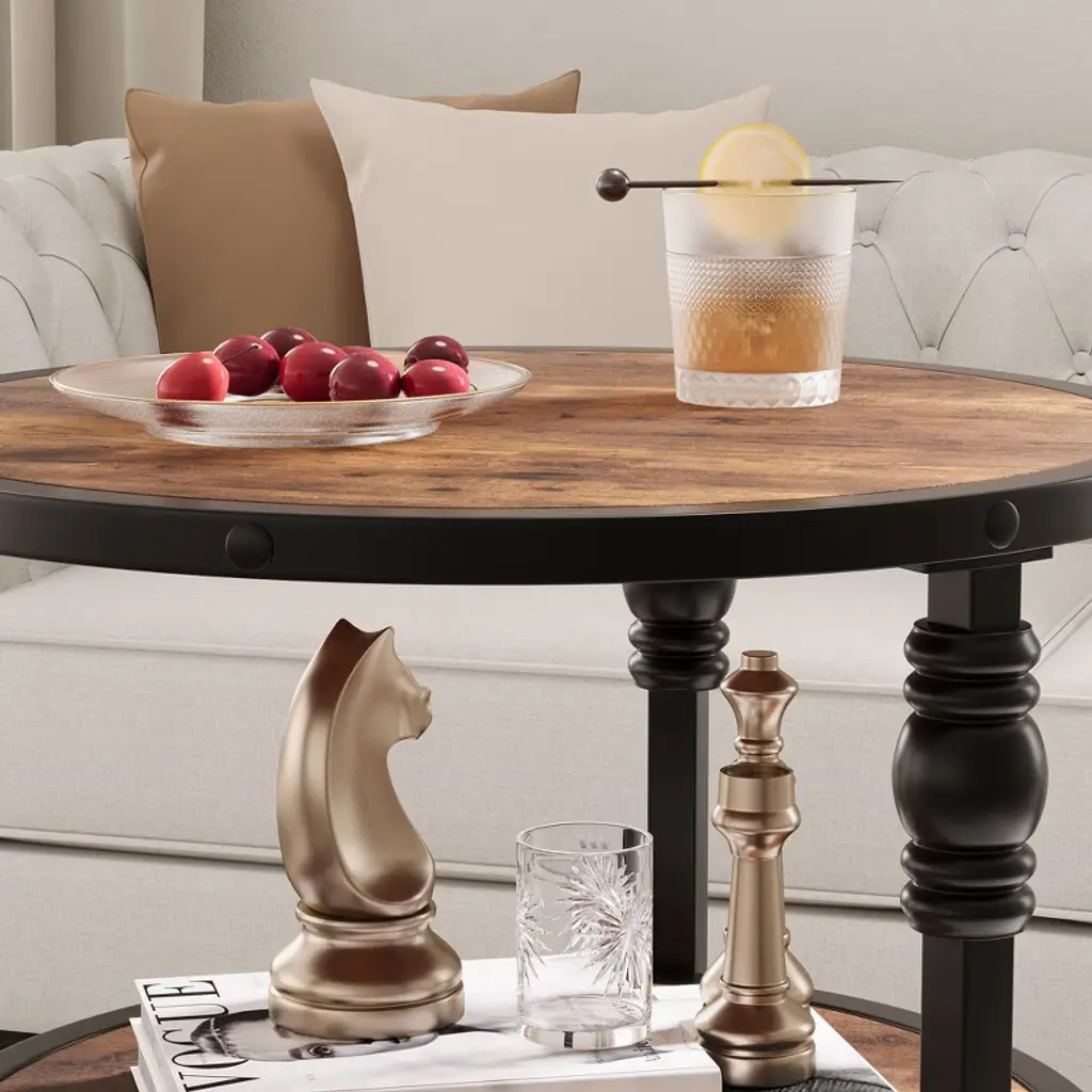 ELEGANT VINTAGE STYLE: The side table combines natural wood grain finish boards with thickened Roman column table legs to emphasize its carving's side elegant lines and great craftsmanship in details, which showcases a vintage glam style and creates a stylish and luxurious vibe, making it an elegant and timeless eye-catcher to fit perfectly with almost all other furniture items. It is not just a side table, but a decoration artwork, that adds an elegant touch to your living room or bedroom. ROBUST BUILD: Our end table is crafted from high-grade MDF engineered wood and heavy-duty metal, ensuring it's sturdiness and durability. The waterproof thickened tabletop provides excellent stability, allowing the side table to bear up to 150 lbs, which is more than sufficient for your needs. The thickened metal legs of the side table ensure that it is stable and does not shake. 3 Adjustable footpads are designed for leveling or uneven, and protect your tile and wood floors from scratches. MULTIFUNCTIONAL END TABLE: The height of the end table is designed to match most sofas and beds, making it an ideal choice as a sofa side table, bedside table, nightstand, end table, or accent table. It is suitable for use in a bedroom, living room, office, small spaces, or any other area. The bedside table features an attractive design that combines industrial, contemporary, and retro styles, making the nightstand compatible with any home decor and furniture. SPACIOUS STORAGE: The round end table overall size is 18.1”L x 18.1”W x 23.6”H; The 3 tiers storage shelves structure makes it a larger storage space. Teacups, decorations, books, phones, drinks, and other items are within arm's reach and help keep the living area away from clutter. The wooden grain desktop is waterproof and very easy to clean. With high-quality materials and excellent craftsmanship, the accent table can withstand extended use without fear of wear and tear. EASY to ASSEMBLY: This round end table has been checked and is well-packed before shipping. You don't need to worry about assembly, the living room side table comes with detailed installation instructions, parts and accessories are labeled with numbers, and precise holes make installation accurate and fast. 1 person can assemble in about 15 minutes. If you have any questions before or after your purchase, you can always email us, and we always reply within 24 hours.