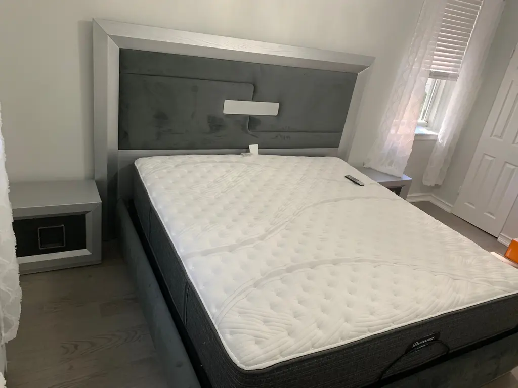 Contemporary high-end Bedroom Furniture Set will give your home elegant and cozy look. The finish is matt + Headboard in Microfiber. Dimensions (in) King W: 93.7" x D: 85.04" x H: 59.06" Queen W: 77.56" x D: 85.04" x H: 62.99" King storage W: 94" x D: 86" x H: 63" Queen Storage W: 78" x D: 86" x H: 63" Series Enzo Style Modern Headboard Style Panel Type Storage Size King, Queen Construction Wood Color Grey, Silver Finish Matt Upholstery Microfiber Storage Available Yes Upholstered Yes Distressed Finish No King Weight Capacity 366 lbs. Queen Weight Capacity 312 lbs. King Storage Weight Capacity 631 lbs. Queen Storage Weight Capacity 532 lbs. Constructed from durable wood and wood products and overlaid with intricate fancy melamine Headboard in microfiber Matt grey finish Silver wooden construction 1-year limited warranty on cushions and leather or fabric. [Description]Contemporary high-end Bedroom Furniture Set will give your home elegant and cozy look. The finish is matt + Headboard in Microfiber.[Specifications] Dimensions (in) King W: 93.7" x D: 85.04" x H: 59.06" Queen W: 77.56" x D: 85.04" x H: 62.99" King storage W: 94" x D: 86" x H: 63" Queen Storage W: 78" x D: 86" x H: 63" Series Enzo Style Modern Headboard Style Panel Type Storage Size King, Queen Construction Wood Color Grey, Silver Finish Matt Upholstery Microfiber Storage Available Yes Upholstered Yes Distressed Finish No King Weight Capacity 366 lbs. Queen Weight Capacity 312 lbs. King Storage Weight Capacity 631 lbs. Queen Storage Weight Capacity 532 lbs. [endSpecifications] [Features] Constructed from durable wood and wood products and overlaid with intricate fancy melamine Headboard in microfiber Matt grey finish Silver wooden construction [endFeatures][Warranty] 1-year limited warranty on cushions and leather or fabric.[endWarranty] [Description]Contemporary high-end Bedroom Furniture Set will give your home elegant and cozy look. The finish is matt + Headboard in Microfiber.[Specifications] Dimensions (in) King W: 93.7" x D: 85.04" x H: 59.06" Queen W: 77.56" x D: 85.04" x H: 62.99" King storage W: 94" x D: 86" x H: 63" Queen Storage W: 78" x D: 86" x H: 63" Series Enzo Style Modern Headboard Style Panel Type Storage Size King, Queen Construction Wood Color Grey, Silver Finish Matt Upholstery Microfiber Storage Available Yes Upholstered Yes Distressed Finish No King Weight Capacity 366 lbs. Queen Weight Capacity 312 lbs. King Storage Weight Capacity 631 lbs. Queen Storage Weight Capacity 532 lbs. [endSpecifications] [Features] Constructed from durable wood and wood products and overlaid with intricate fancy melamine Headboard in microfiber Matt grey finish Silver wooden construction [endFeatures][Warranty] 1-year limited warranty on cushions and leather or fabric.[endWarranty]
