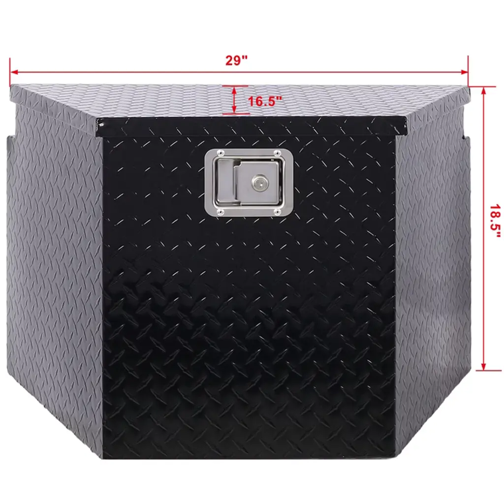 Discover the perfect storage solution with the Gulches 29 Inch Aluminum Tool Box in black! This heavy-duty truck bed tool box is designed for outdoor trailers, pickups, and RVs, providing a secure space for your tools and equipment. With dimensions of 29" x 16.5" x 18.5", it offers ample storage capacity and features a lock for added security. Built to endure the elements, this durable tool box is perfect for all your outdoor storage needs. Keep your gear organized and protected with this stylish and practical tool box!