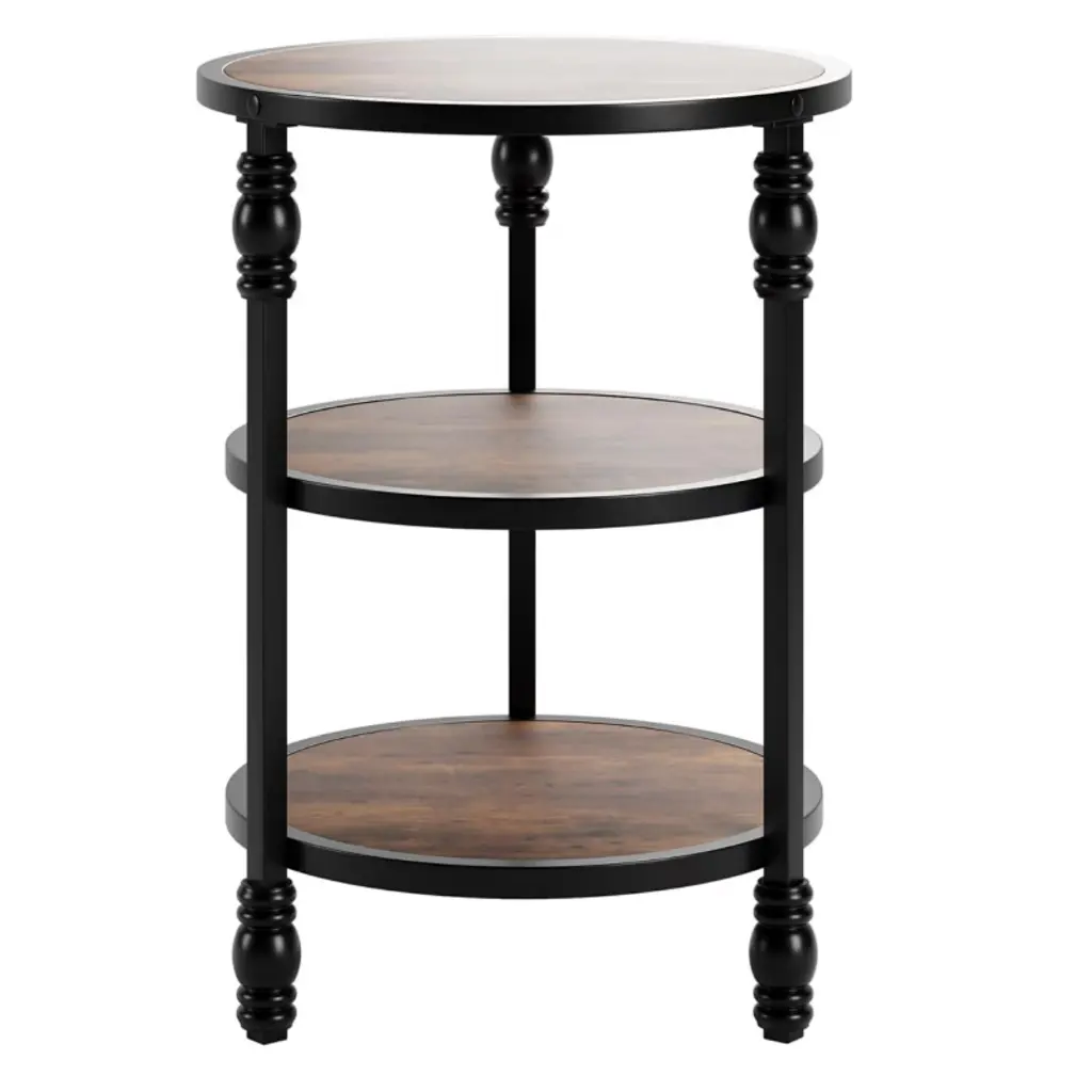 This Elegant Vintage-Style Side Table Features Natural Wood Veneer And Roman Column Legs, Durable Mdf And Metal Construction With A Waterproof Top Supporting Up To 150 Lbs, A Versatile Height Suitable For Various Rooms, Spacious Three-Tier Storage, And Easy Assembly With Clear Instructions.