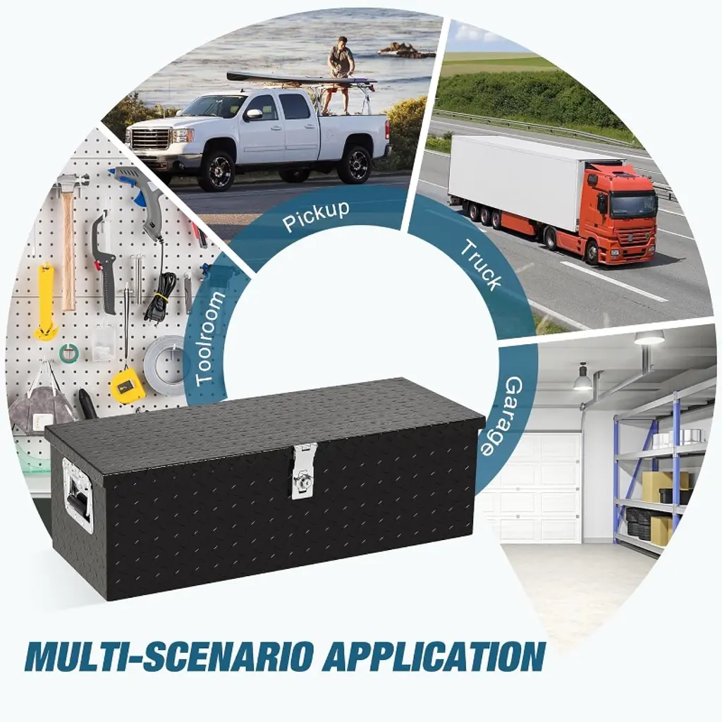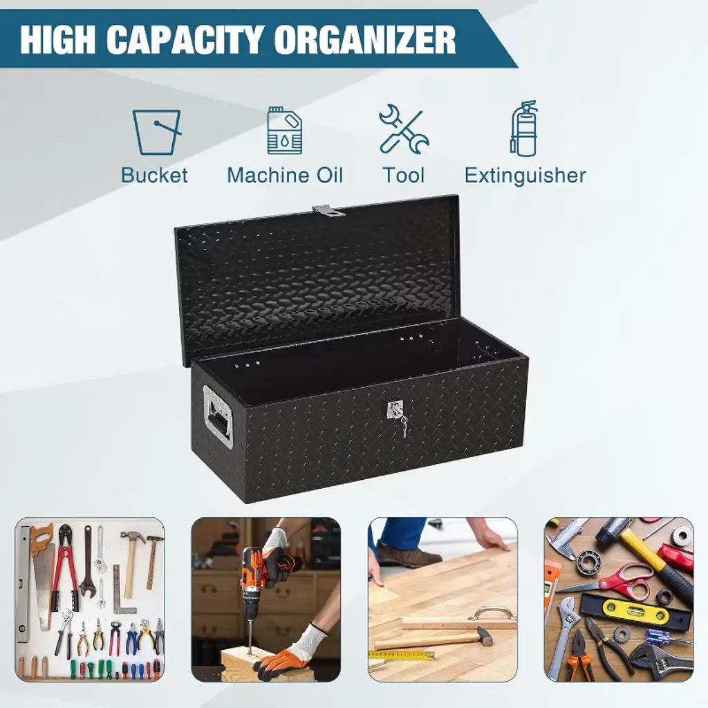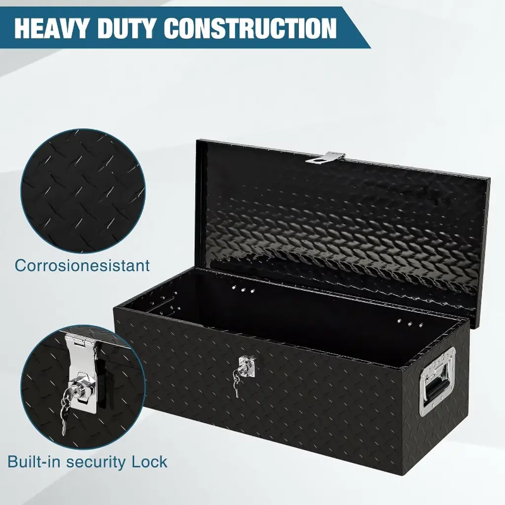 Heavy Duty Aluminum Tool Box Pick Up Truck Bed RV Trailer Toolbox Waterproof Square Storage Organizer with Side Handle, Lock with Keys