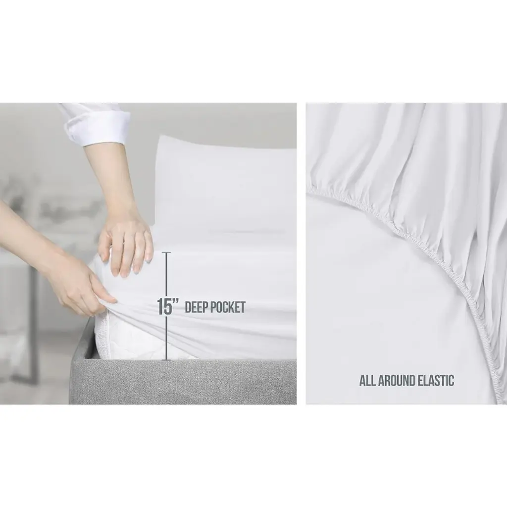 Luxury 4 PC Twin Bed Sheet Set :Utopia Bedding 4 piece Twin Sheets Set comprises of 1 flat sheet (66 by 96 inches) with a 2 inches self-hem, 1 fitted sheet (39 by 75 inches) with a 15 inches Deep Pocket / box for over-sized bedding and 2 exquisitely embroidered pillowcases (20 by 30 inches each) with a 4 inches hem. Redefine and uplift your bedroom style with this timeless bed sheet set, offering ultimate comfort, extraordinary appeal and a heavenly sleep. Fitted Sheet with Dual Side Storage Pockets: Our fitted sheet contains dual-side, 8 inches deep storage pockets, each with 2 splits, measuring 4.75 inches and 7.75 inches. These storage pockets, conveniently hold your eye glasses, remote controls, cell phones, keys, medicines, books, pens and other small items within reach, allowing you to have a hassle-free and quick access. All-Around Elastic: The all-around elastic used in the fitted sheet makes it fit easily onto the mattress while giving a nice finish to the bed.Premium Quality Brushed Microfiber Polyester, Made using superior quality microfiber yarn, our bed sheet set is exceptionally soft to touch, breathable, wrinkle free and shrinkage and fade resistant. Give a sophisticated look to your bed with our classic bed sheet set. Durable and Fade Resistant: The microfiber material is processed to make it resistant to shrinkage and fading which adds to the longevity of the set by keeping it in great condition. Cuddle up and enjoy a restful sleep! Easy to Care and Clean: The plush texture of these bed sheets and pillow cases allows easy cleaning by hand wash or machine wash using cold water and a light detergent only. Do not use bleach; Tumble dry or iron on normal temperature to maintain quality and have a satisfying finish.