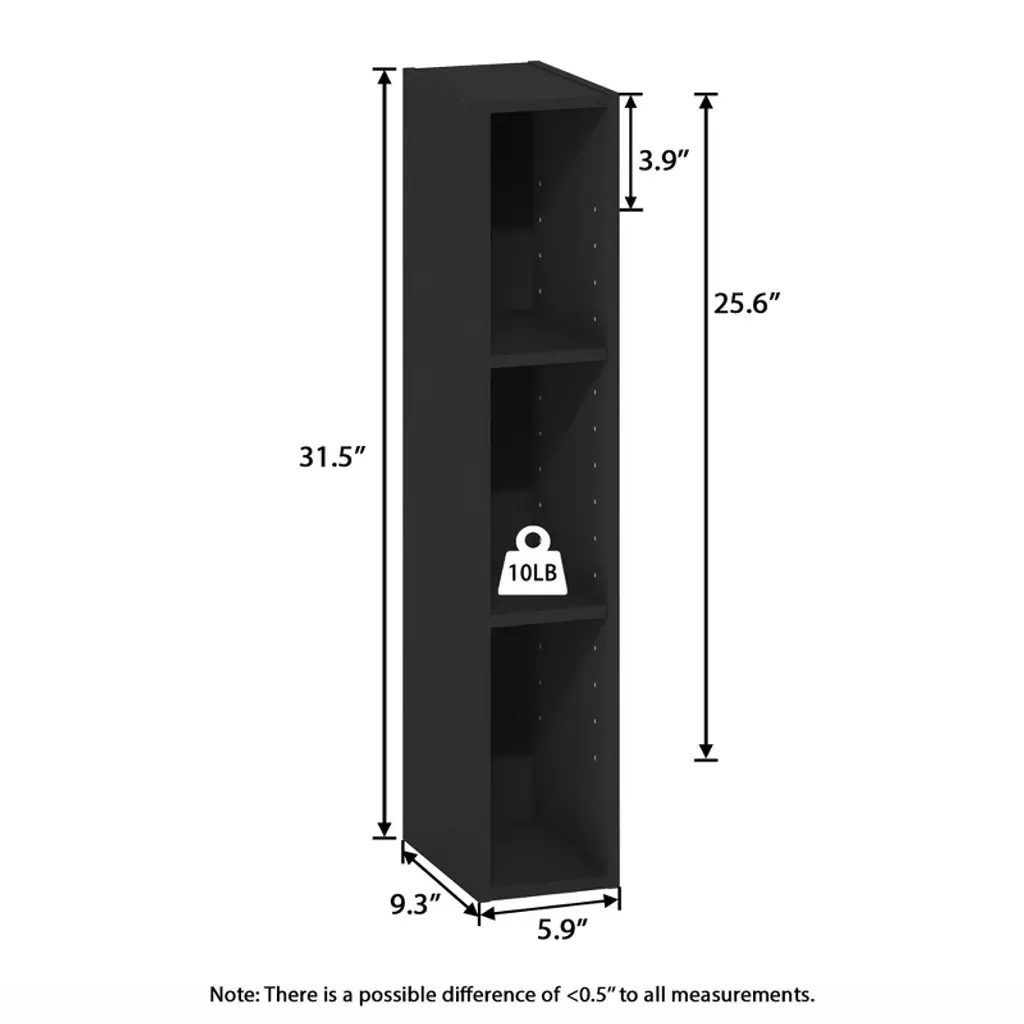 Homlux 3-tier Space Saving Bookcase With Open Adjustable Storage Shelves For Closet, Bedroom, Black