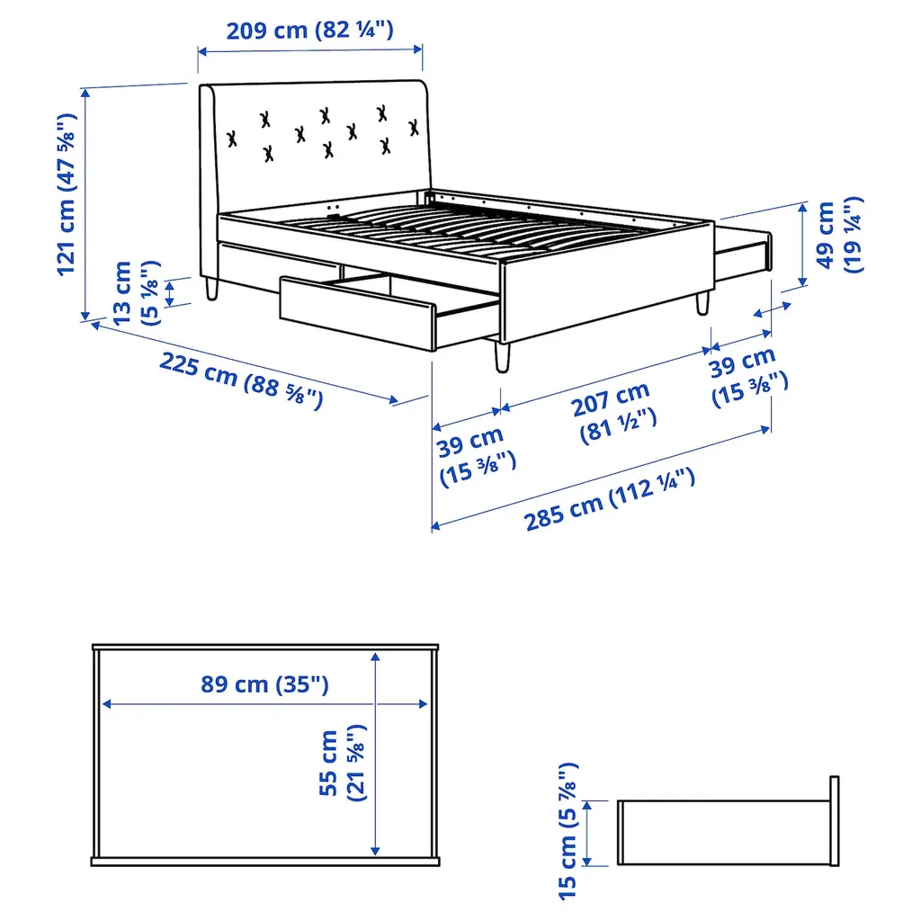IDANÄS Upholstered storage bed