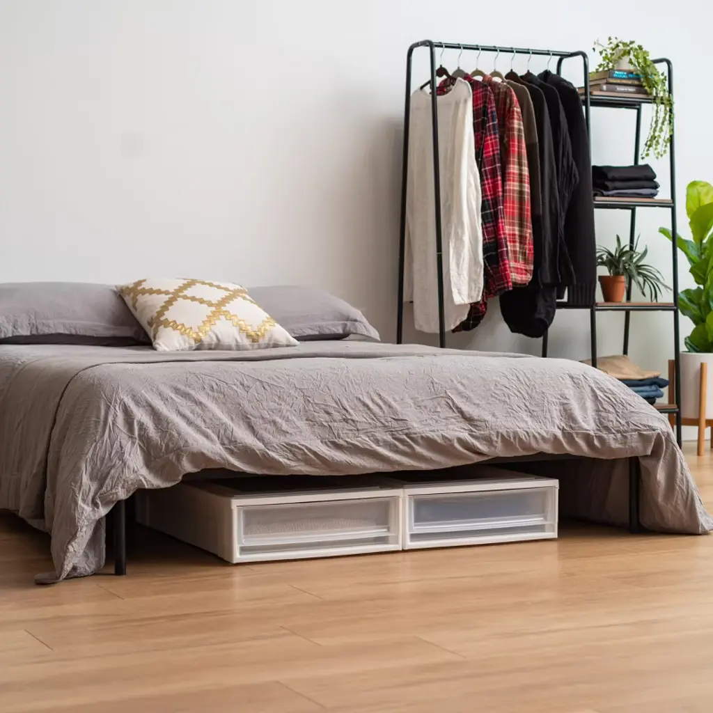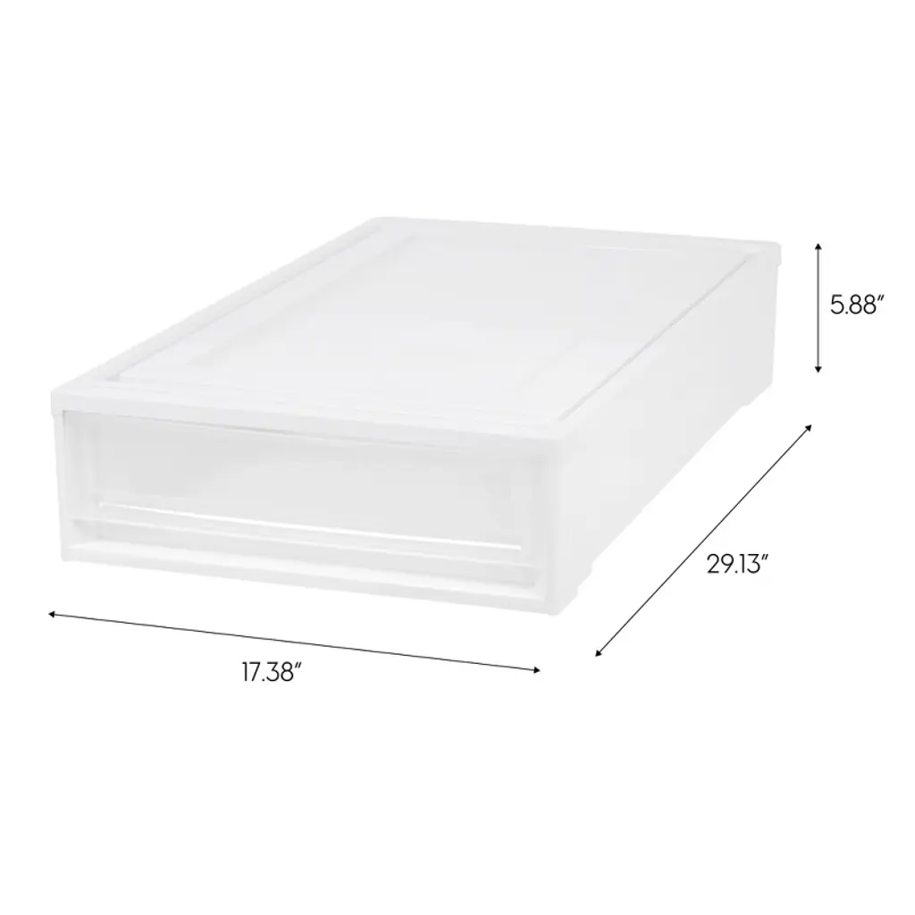Dominate the storage game with this extra-long stackable drawer unit. Designed to keep going where other storage boxes stop short, its unique length makes use of valuable under-bed space that would otherwise be wasted. Stacks securely with the deep under-bed and other under-bed storage boxes, so you can fit multiple units together to create customized storage where you need it most. Perfect under-beds, in dorm rooms, or any shallow space with a shortage of storage. Made in USA. Set of two.
