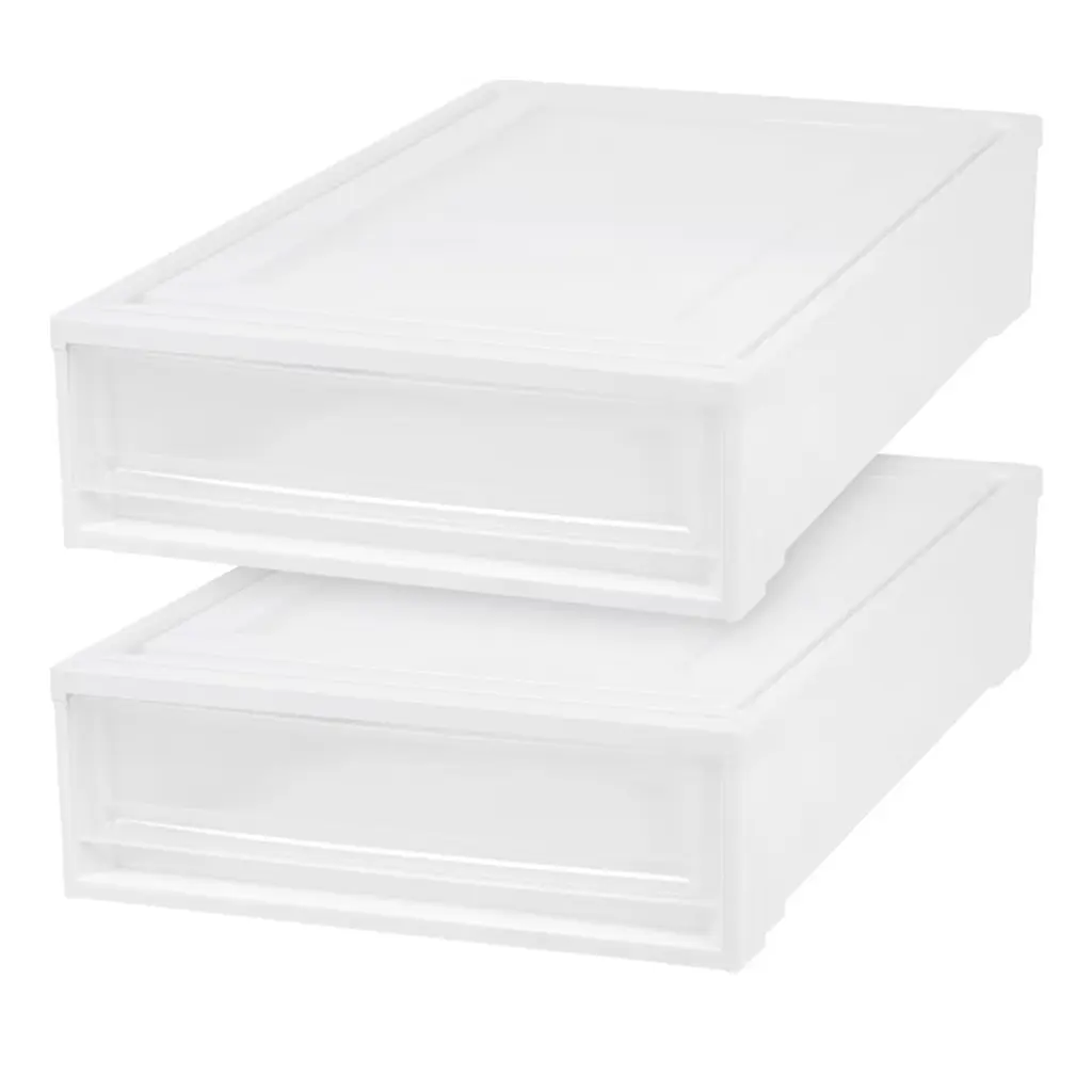 Iris Usa 2Pack 27.5qt Plastic Under Bed Storage Containers With Sliding Organizer Drawers, White