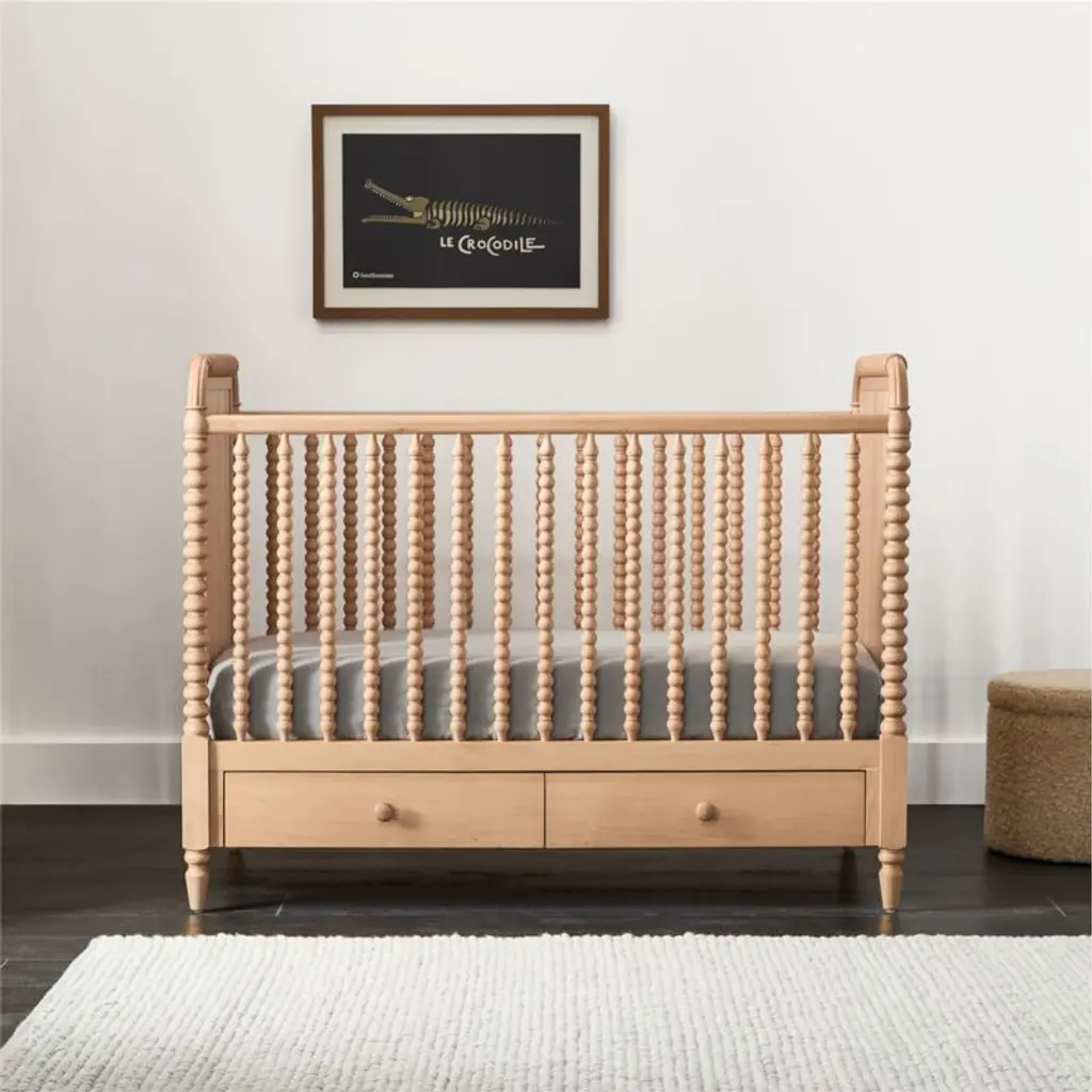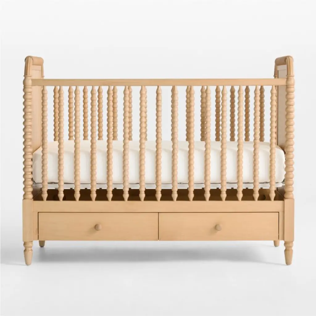 Jenny Lind Heirloom Maple Wood Convertible Storage Baby Crib With Toddler Bed Rail