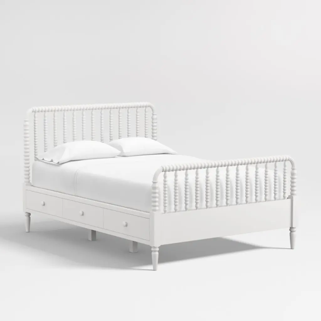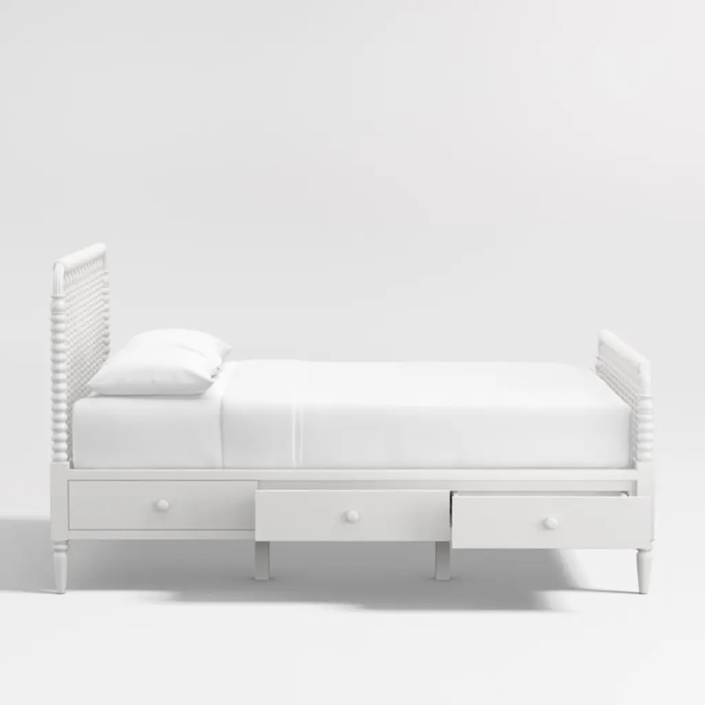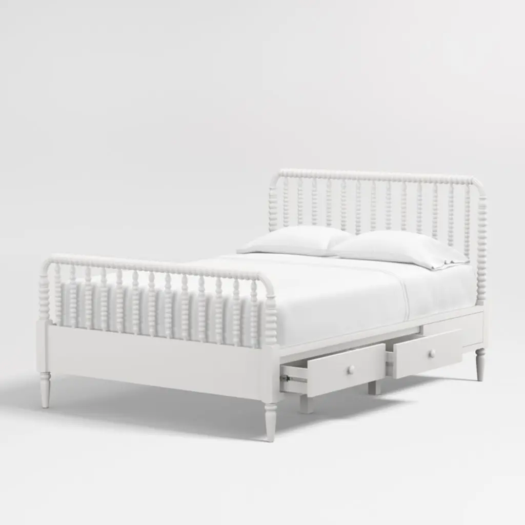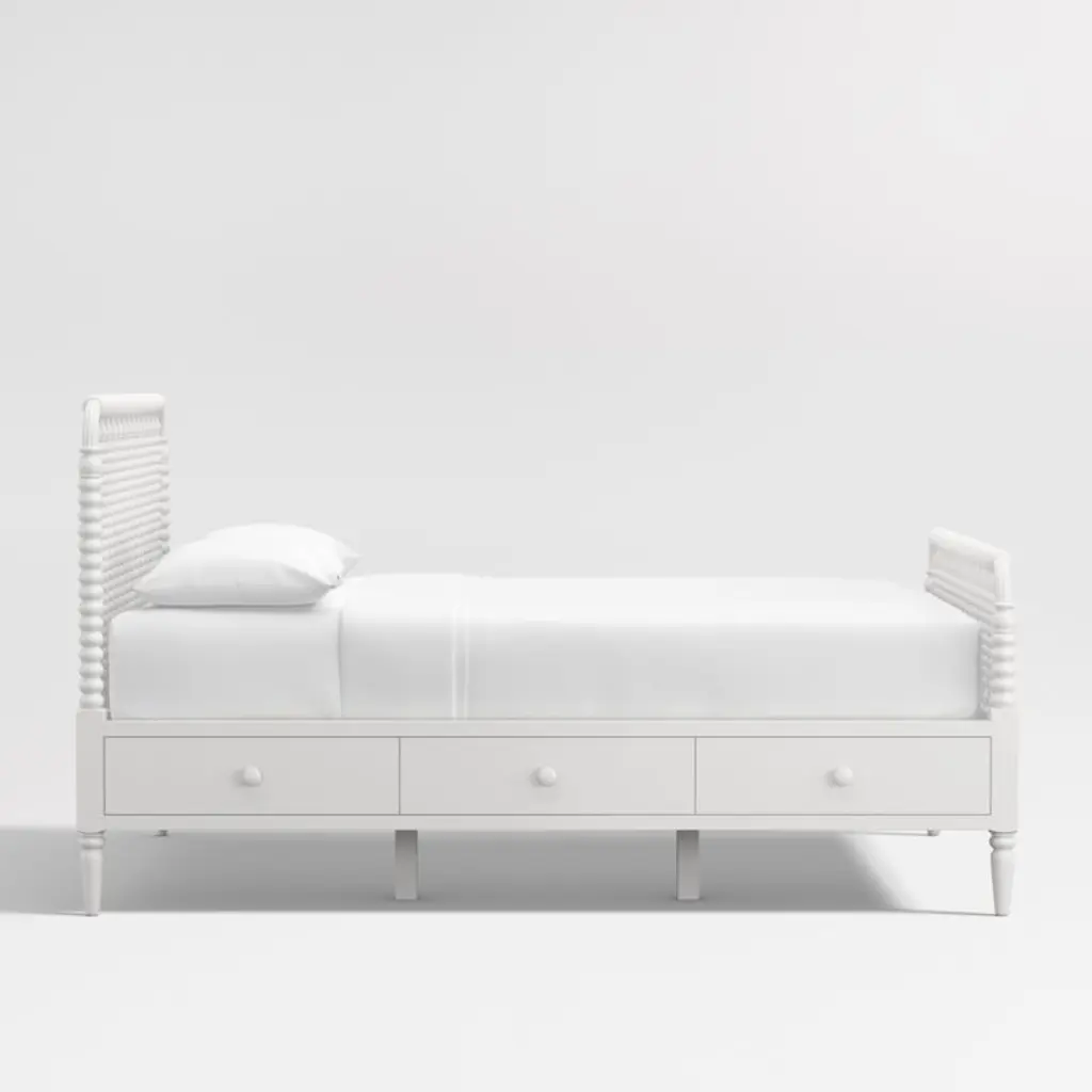 Jenny Lind White Wood Spindle Kids Full Storage Bed