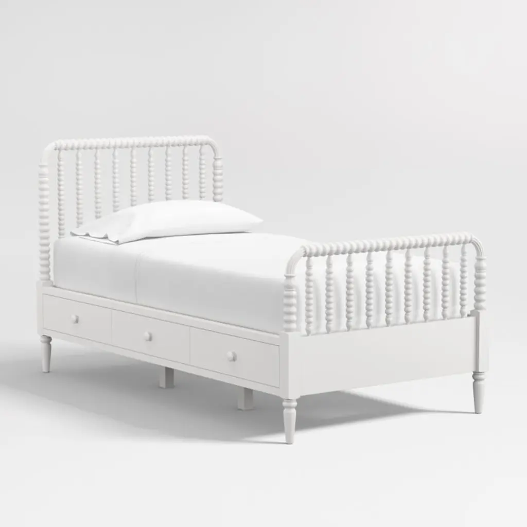 "A bestseller for a reason, our Jenny Lind spindle bed is a showstopper in any bedroom. The iconic collection, with its intricate wood turnings, has been made in the same location with the same classic design for more than 20 yearsbut its modern sensibility means it hasn't aged a day. With this version of the beloved bed, we've stuck with the same exemplary craftsmanshipeach spindle is made from a single piece of wood, then hand-sandedwhile adding 3 storage drawers to the base for practicality. Fun fact: This forever classic is named for the 19th-century opera singer Jenny Lind, who was the pop icon of her day.