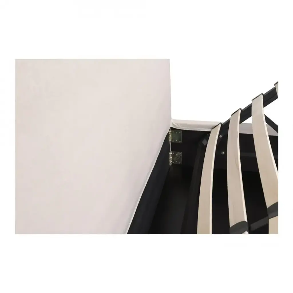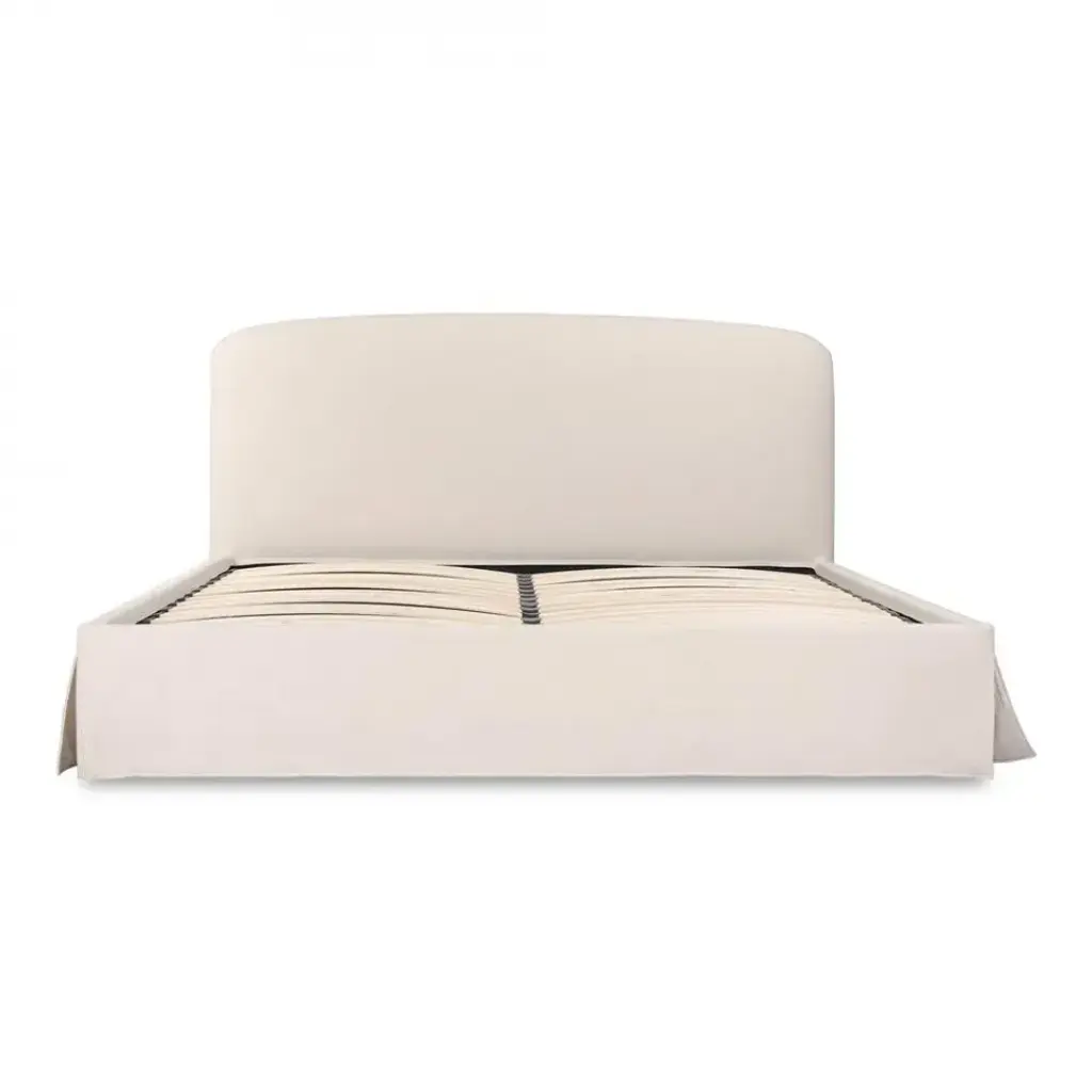 The Joan bed is more than meets the eye, with a hidden compartment that is tastefully innovative and easy to access. Beneath the mattress, a hydraulic system reveals ample storage space neatly tucked away, while a fully removable slipcover allows easy cleaning. The upholstered frame features the same fabric as the slipcover, so it can also be used on its own, providing two easy options to create the same classic look.