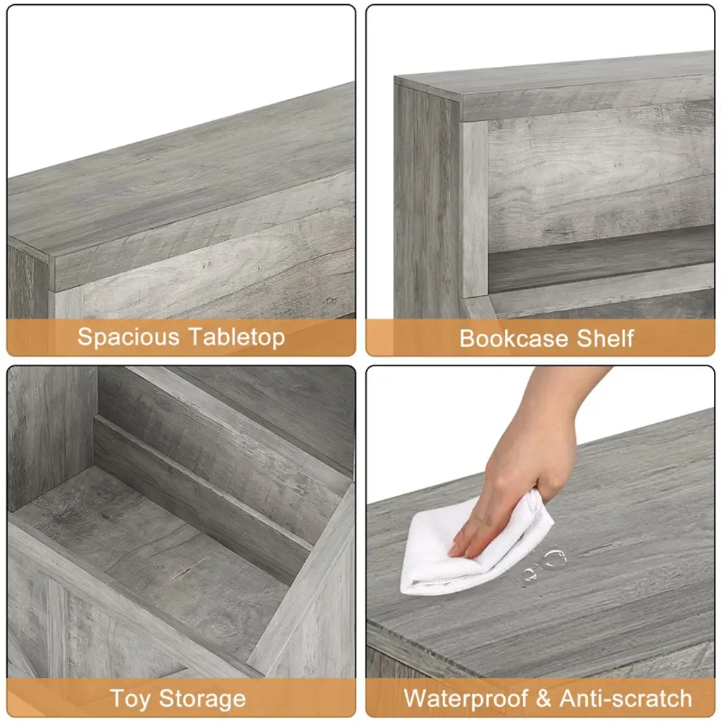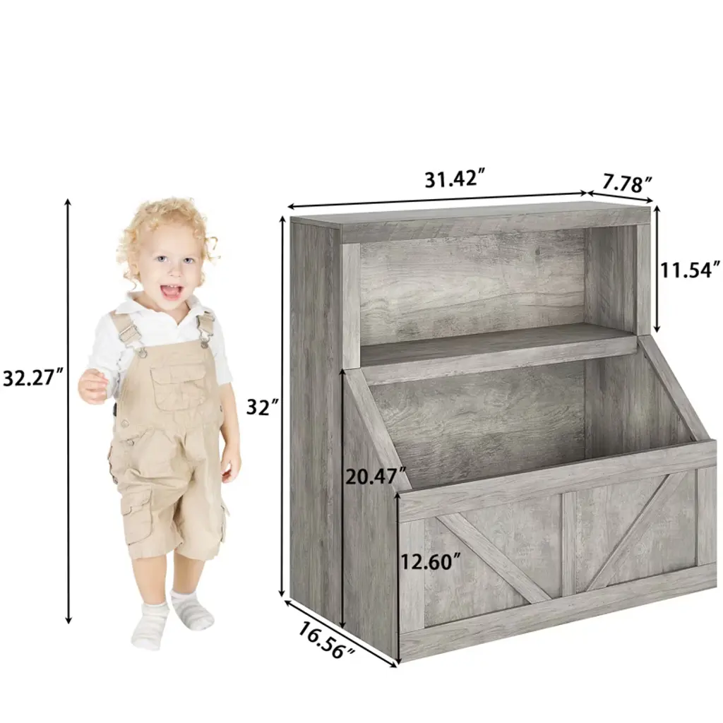 Kids Bookshelf & Toy Organizer - 31.4" Wooden Toddler Bookcase With Cubby, Storage Cabinet For Playroom, Bedroom, Nursery, Classroom, Daycare, Grey