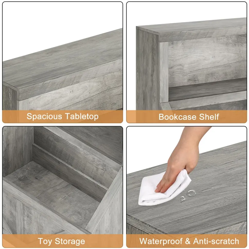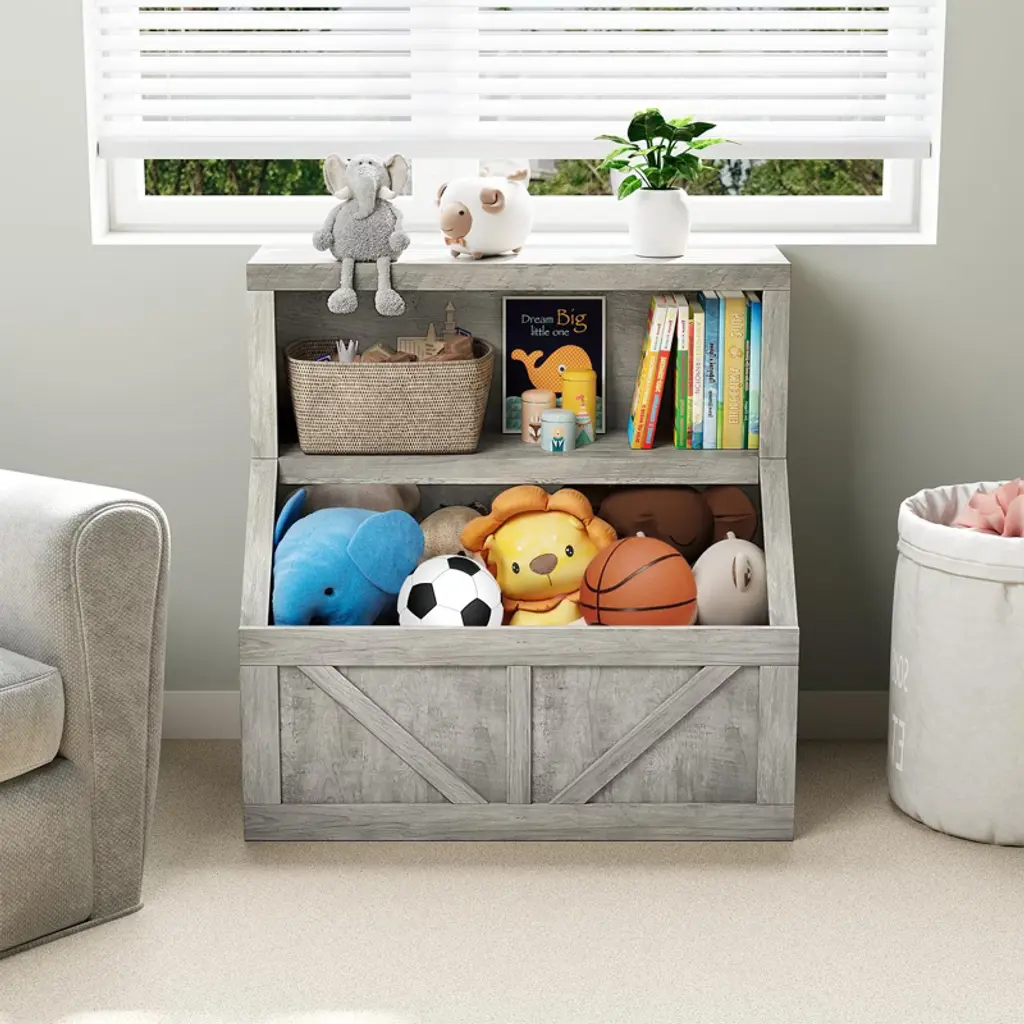 Designed at the perfect height for toddlers, this 2-tier kids bookshelf and toy organizer encourages independence by making books and toys easily accessible. Featuring spacious double-layer shelves and a convenient storage cabinet, it offers ample room for neatly organizing children¡¯s books, toys, and games. Constructed from durable wooden materials with a sturdy structure, this toddler bookcase is built to withstand daily use in playrooms, classrooms, or bedrooms. Easy to assemble with clear instructions, it makes organizing your child¡¯s space simple and efficient. An ideal gift for parents and educators looking to create tidy, engaging environments for little ones. Dimensions: Designed for toddler accessibility; specific dimensions may vary by model Material: Durable wood construction What You Get: One 2-tier kids bookshelf with storage cabinet Assembly hardware and clear instructions After-Sales Service: We offer responsive customer support and step-by-step assembly guidance to ensure quick setup and a hassle-free experience.